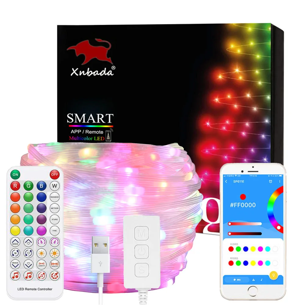 СВЕТОДИОДНАЯ Гирлянда WS2812B с USB, рождественские лампы WS2812, RGB, полноцветная музыкальная RGB лента с Bluetooth, индивидуальное управление, 5 в постоянного тока