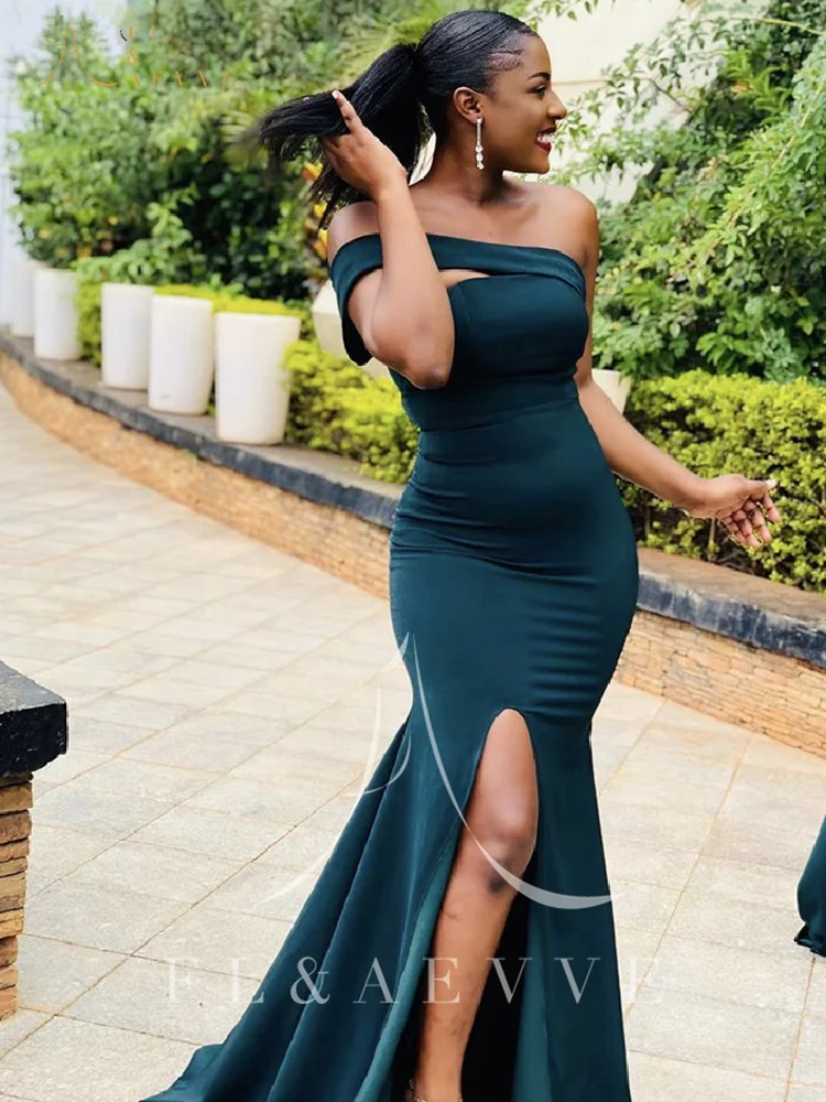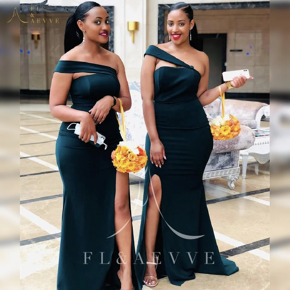 Женское платье-Русалка на одно плечо, зеленое платье для подружек н...