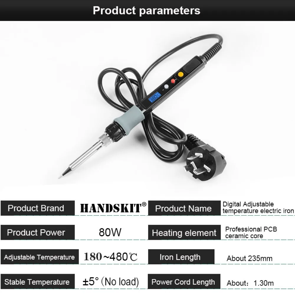 Цифровой Электрический паяльник с ЖК-дисплеем, 80 Вт, 220 В, с регулируемой температурой, портативная ручка для сварки олова, аксессуары для паяльника