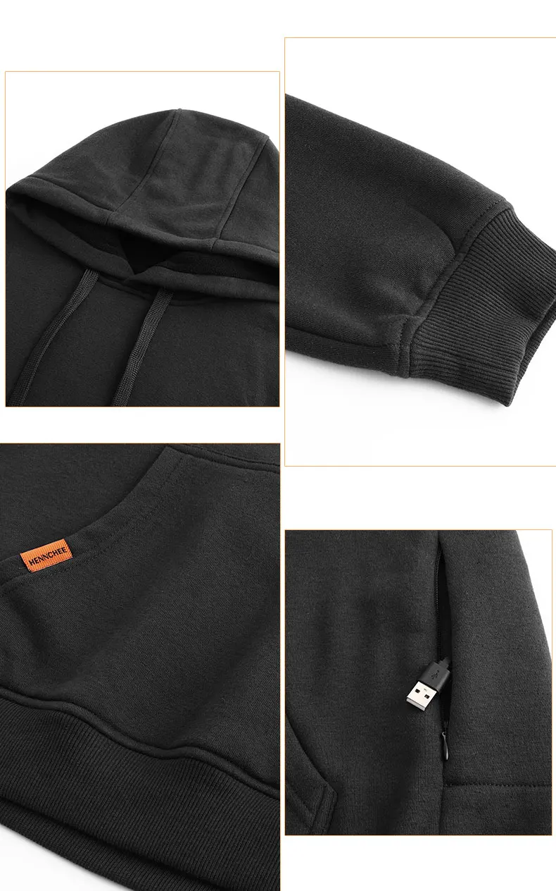 Мужской пуловер с подогревом, толстовка с капюшоном на батарейках, зимняя теплая флисовая толстовка с капюшоном, черная, серая, темно-синяя мужская одежда