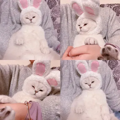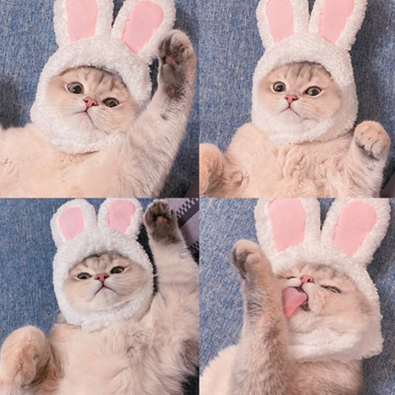 Забавные костюмы для кошек и собак, шапка с теплым Кроликом, новогодние подарки, аксессуары для вечеринки на Хэллоуин, реквизит для фото, головной убор