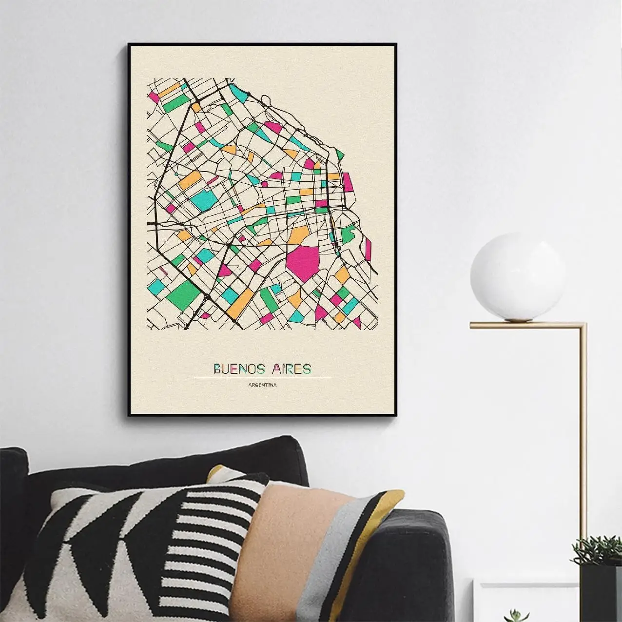 Современное минималистичное украшение для спальни, гостиной, карта Аргентины, Буэнос-Айрес, Картина на холсте, Художественная печать, плакат, картина, Настенный декор