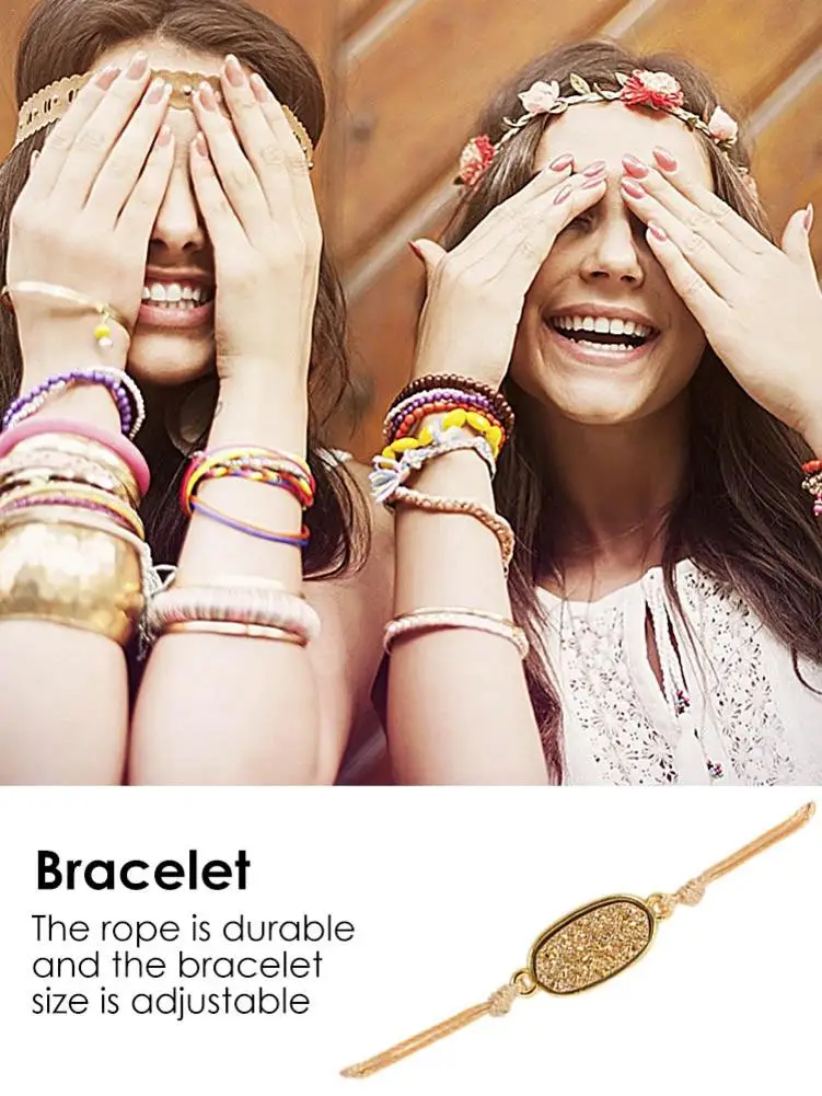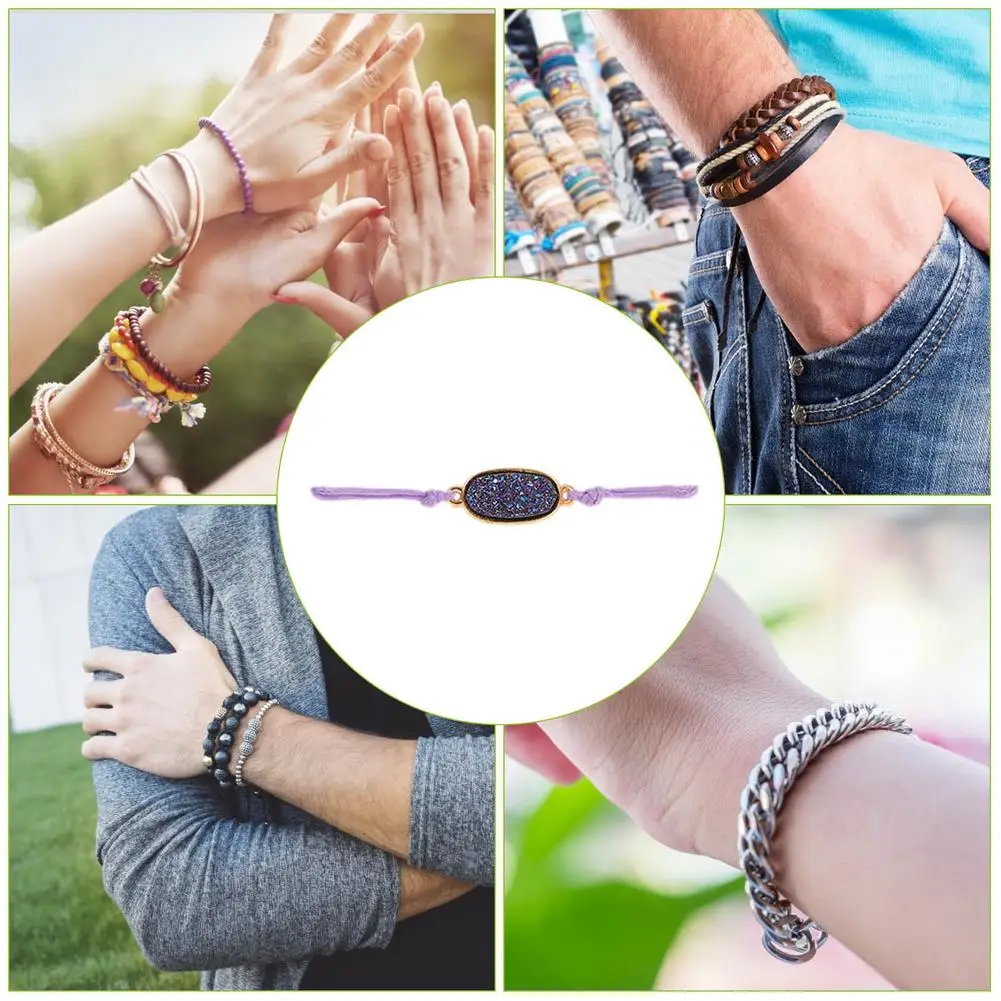 Точки пули:1. Прочный и долговечный: Изготовлен из отличного материала, он безопасен для аллергической кожи. Веревка прочная и не легко повредить. Вы можете носить его с уверенностью.2. Регулируемый дизайн: его можно использовать как пару браслетов, которые можно использовать в качестве подарка любимой. Изысканный тканый браслет также является прекрасным пейзажем для вечеринок.3. Легкий и удобный: эластичная пряжка легко сгибается, что позволяет легко надевать и снимать. Маленькие подвески легкие, что уменьшает дискомфорт при ношении.4. Идея подарка: для вашего любимого человека, друзей или коллег, это отличный подарок. Очень подходит для рождества, юбилея, Дня Святого Валентина, Дня матери и дня рождения.5 、 подходит Размеры: Подвеска Размеры составляет около 2,0*0,9 см/0,79*0,35 дюймов Длина цепи: около 16-25 см/6,3-9,84 дюймов Бумага карты: about7 * 9,5 см/2,76*3,74 дюймов. Все продукты снимаются под солнечным светом. То, что вы видите, взято в реальных предметах. Однако из-за различных причин, таких как различные экраны, цвета на фотографиях могут немного отличаться от реальных объектов. Пожалуйста, учитывайте фактический товар.Характеристики:Материал: медь + искусственный камень из смолы + Бусины Из Нержавеющей СталиКатегория: браслетСтиль: унисексМоделирование: геометрический, ОвальныйУпаковка: отдельно упакованнаяПрименение: фестивали, церемонии открытия, юбилейные праздники, торговые ярмарки, рекламные акции, путешествия, бизнес-подарки.Материал подкладки: нетСерия: карточные браслеты из серииЦвет: фиолетовый с золотистым, розово-красным, синий, золотой, травяной зеленый, черный, оранжевый, светло-голубой, светло-розовато, темно-синийРазмер продукта:Кулон Размеры: около 2*0,9 см/0,79 * 0.35inЦепь Длина: около 16-25 см/6,3-9.84inБумага карты: около 7*9,5 см/2,76 * 3.74inУпаковочный лист:1 x браслетПримечания:Из-за световых эффектов и углов съемки, в продукте есть разница в цвете, пожалуйста, поймите.Из-за ручного измерения возможна погрешность в размере изделия.