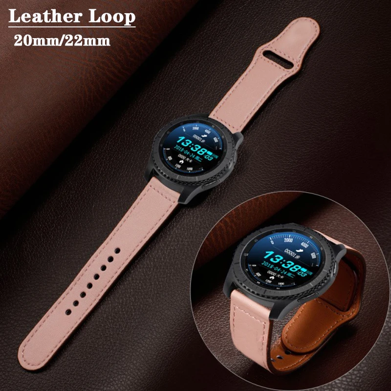 20 мм 22 мм кожаный ремешок для Samsung Galaxy watch Active 2 ремешок 44 мм для Huawei GT/2/Pro Galaxy watch 4/Classic 45/40 мм/46 мм браслет