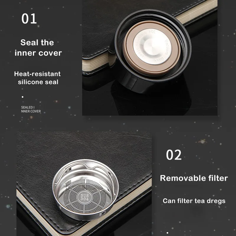 Особенности:<Материал хорошего качества: изготовлен из высококачественной внутренней нержавеющей стали 304 и нержавеющей стали 201 наружной, антикоррозийной, коррозионной и нетоксичной.<Светодиодный дисплей температуры: умный дисплей с большим экраном. Легко понять внутреннюю температуру жидкости, прикоснувшись к светодиодный экрану, поэтому вам не нужно пропускать рот, чтобы проверить температуру и избежать ожогов.<Сохраняет тепло и холодность: с изоляцией из нержавеющей стали. Эта бутылка для воды из нержавеющей стали имеет изоляционную стену, которая оптимально сохраняет температуру горячей или холодной в течение длительного времени.<Удобно: встроенный аккумулятор не нужно заряжать.<Широкий рот: широкий рот делает заправку и очистку более удобными. И гладкий край не повредит вашу губу.<Сетчатый фильтр: t имеет сетку чайного фильтра, может фильтровать остатки, такие как чай.<Не скользит: нижняя часть чашки изготовлена из нескользящей ткани, которая не легко соскальзывает и долговечна.<Герметичность: крышка имеет уплотнительное кольцо, она является герметичной и безопасной в сумке во время на ходу<Широко используется: Эта бутылка для воды идеально подходит для легкого путешествия, идеально подходит для занятий спортом на открытом воздухе, работы, пляжа, школы, офиса, пикника, йоги, пеших прогулок, кемпинга, велоспорта, бега и многого другого.<Идеальный подарок: Простой и стильный, хороший подарок для ваших друзей и семьи.