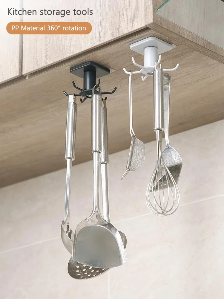 Самоклеящиеся кухонные крючки с вращением на 360 градусов, 6 крючков, домашний настенный дверной крючок, крючок для сумок, одежды, галстуков, вешалка для сумок, подвесная стойка