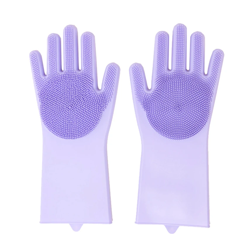 Волшебные многоразовые силиконовые перчатки щетка для чистки перчатки термостойкие для мытья посуды Уход за волосами домашних животных