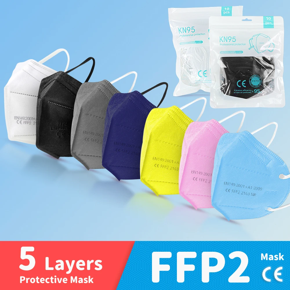 Маска для взрослых FFP2 5Ply KN95, одобренный защитный респиратор для защиты от пыли, защитный лицевой респиратор CE FPP2 FFP3 n95 ffp2mask, доставка в Испанию за 10 дней