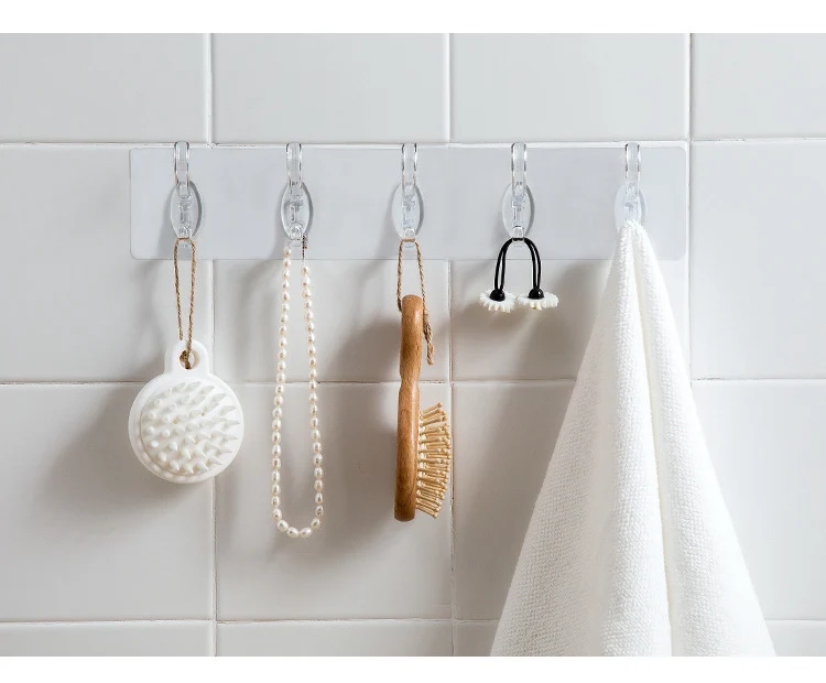 Прозрачный пластиковый клей крючки для кухни и ванной комнаты 6 Ряд...