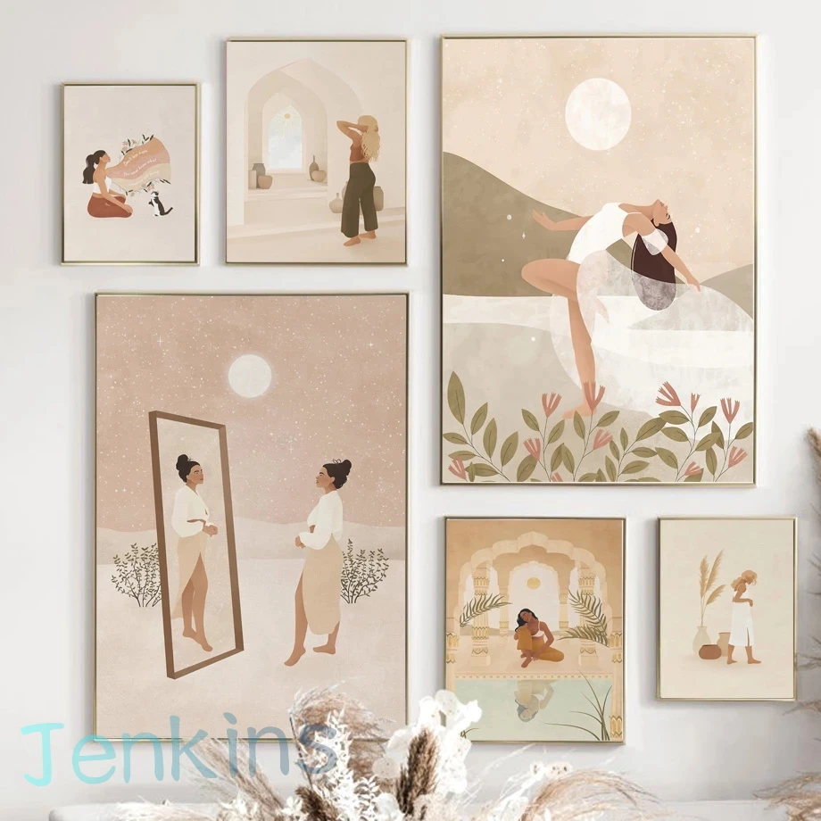 Винтажная Марокканская бежевая девушка солнце лист спорт жизнь северные плакаты и принты настенная Картина на холсте для гостиной домашний декор