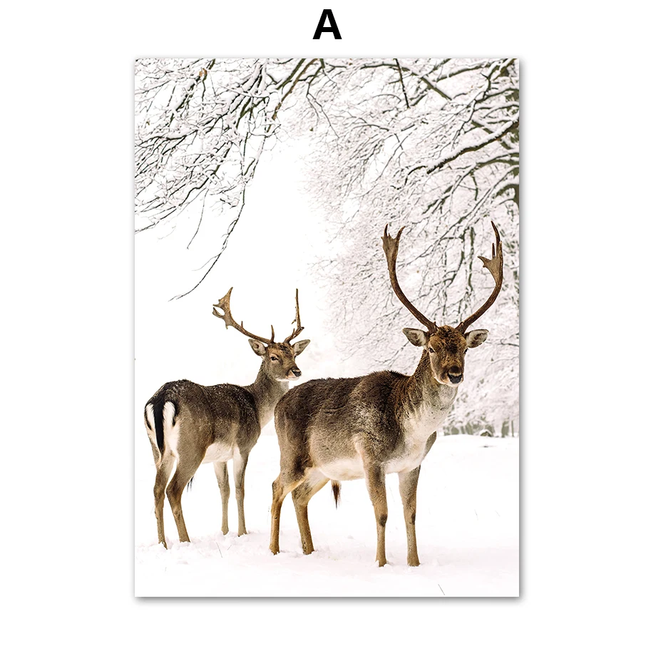 Картина на холсте с изображением природы, зимы, снега, оленя, тростника, дерева, скандинавские плакаты и принты, настенные картины для гостиной, зимний ДекорМатериал: экологически чистый хлопокХарактеристика: солнцезащитный, водонепроницаемый, никогда не выцветает