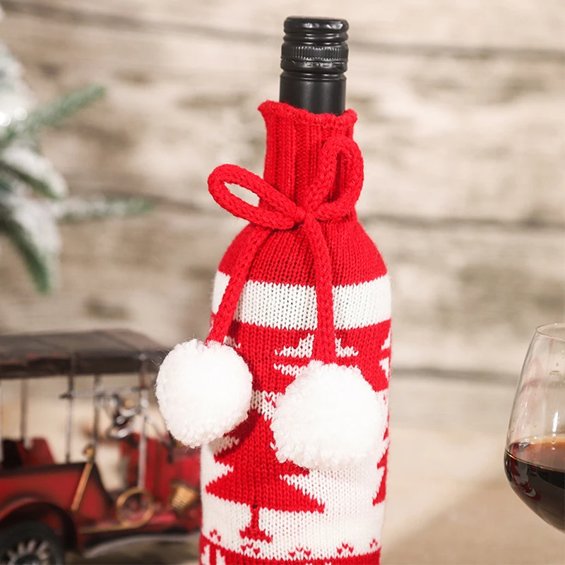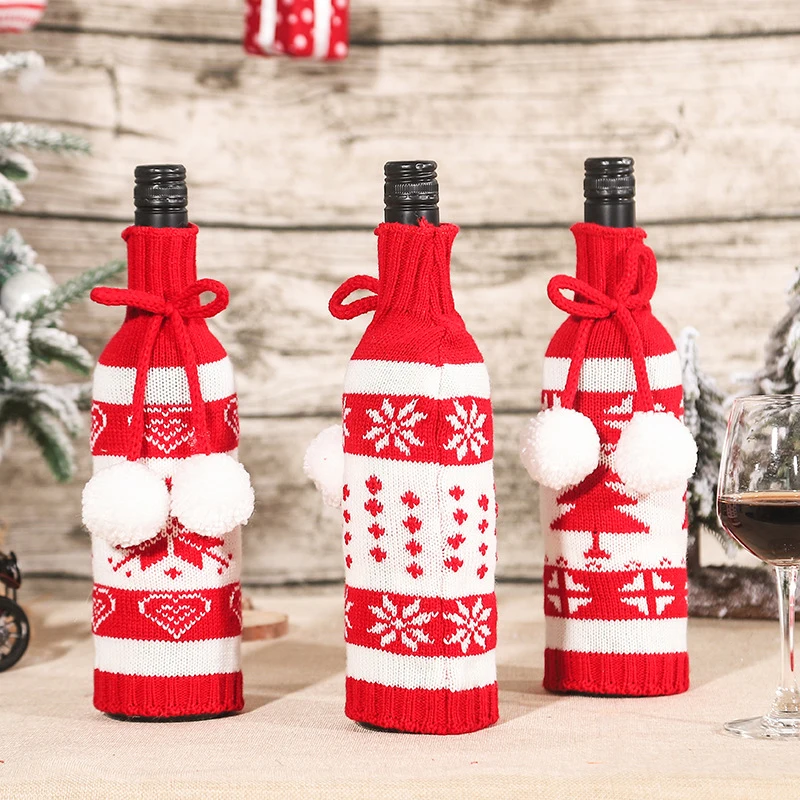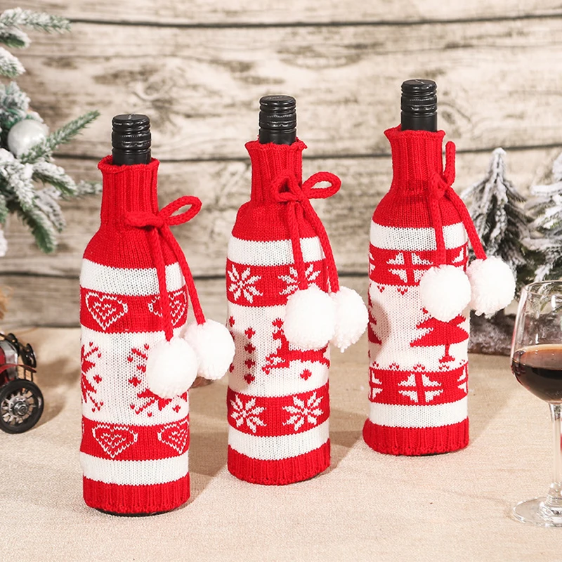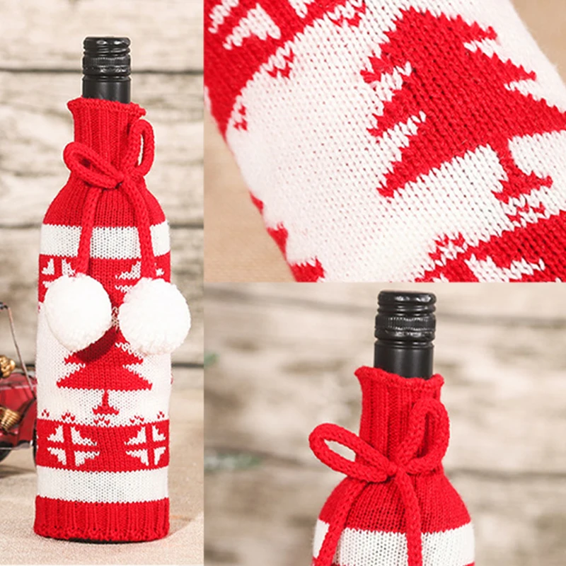 Рождественская вязаная Крышка для винной бутылки Чехлы для бутылки ...