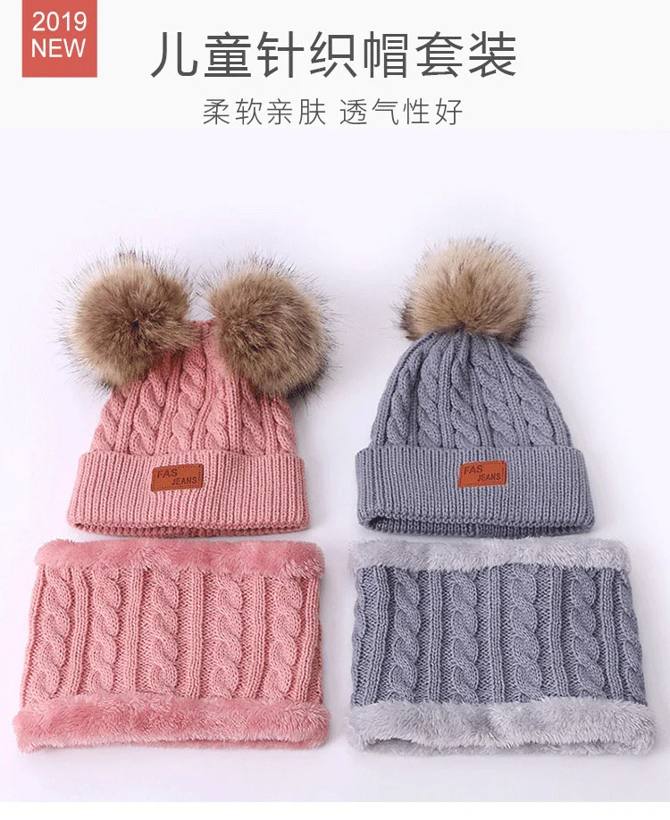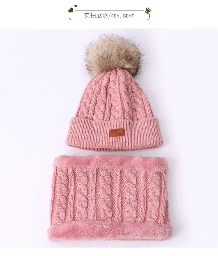 Зимняя детская шапка с нагрудником комплект из двух предметов одинаковая теплая шерстяная плюшевая утолщенная накидка на шею