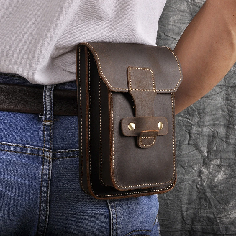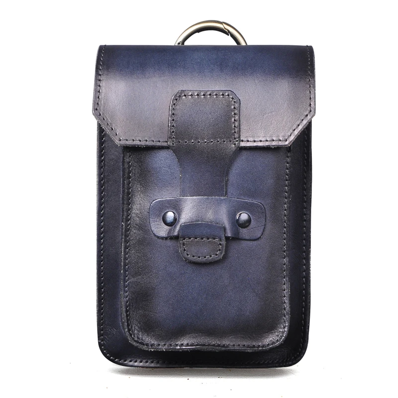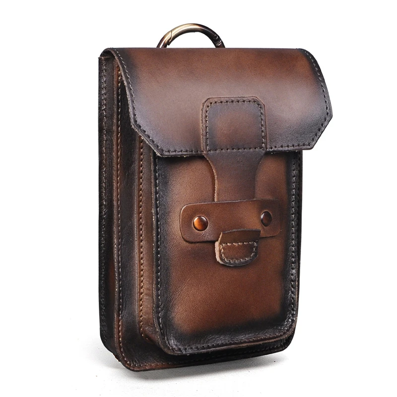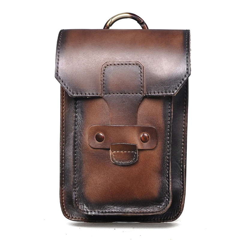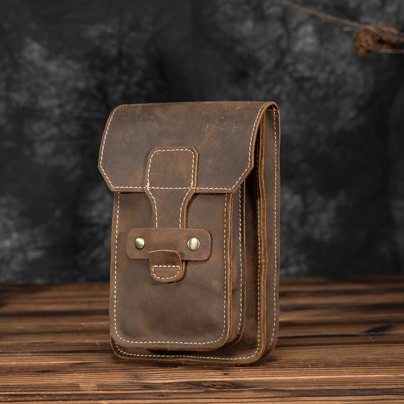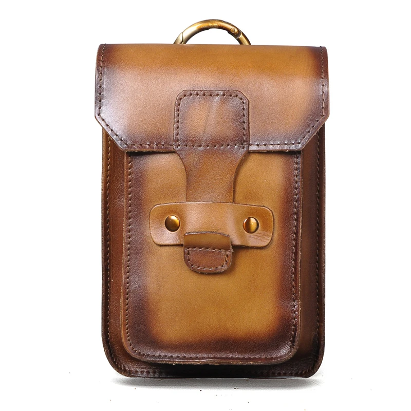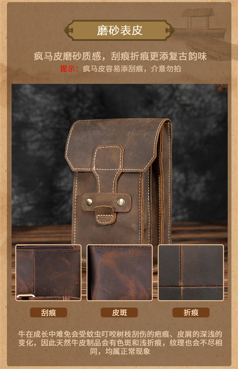 Кожаная мужская сумка ручной работы Crazy Horse, кожаный чехол для мужчин, кожаная сумка для головы 7 дюймов, поясная сумка, ремень для ношения, работа, сидение