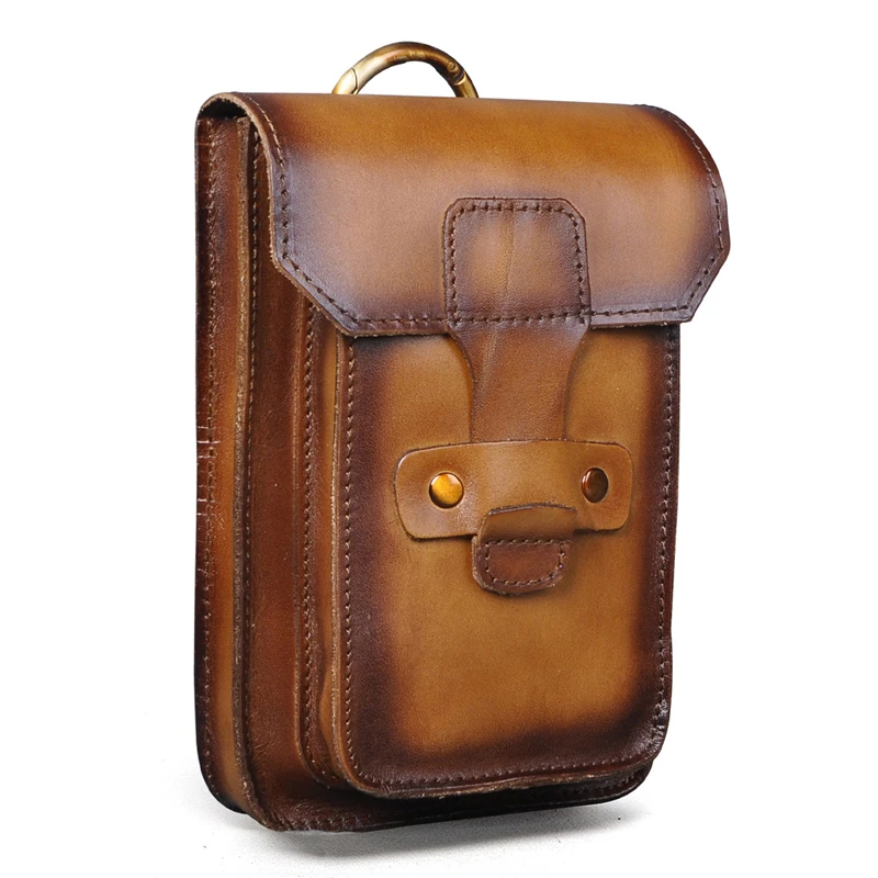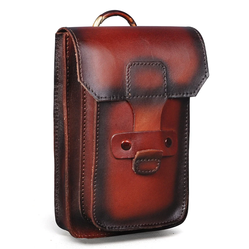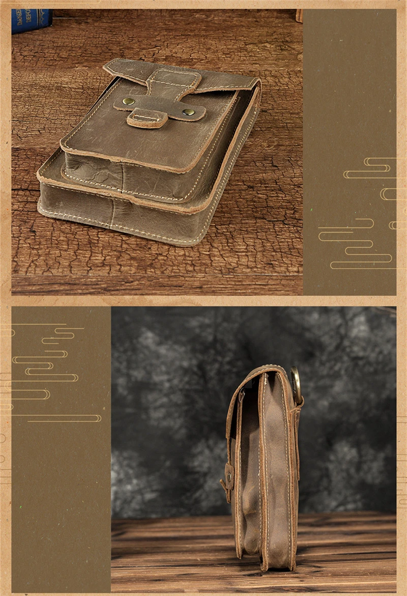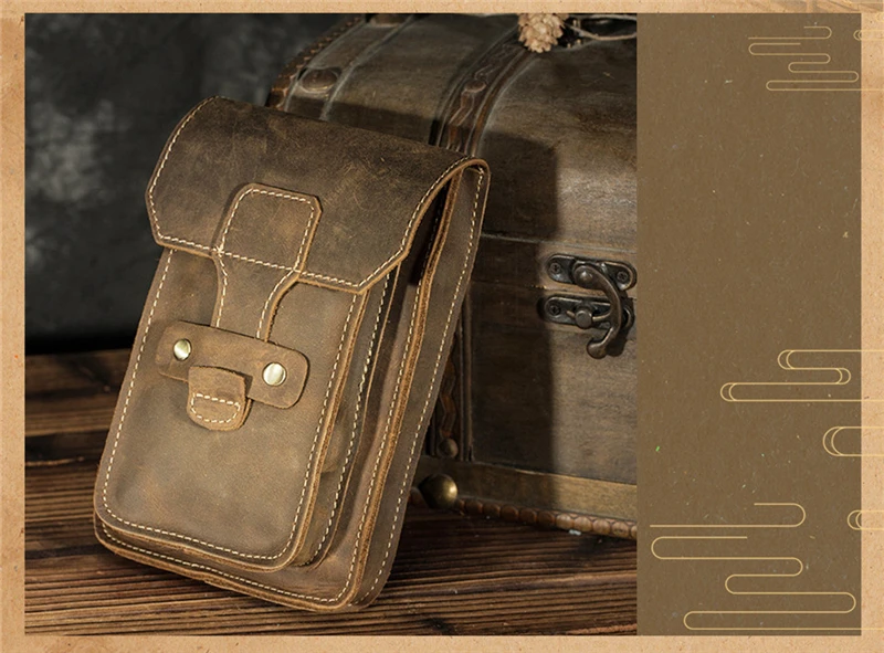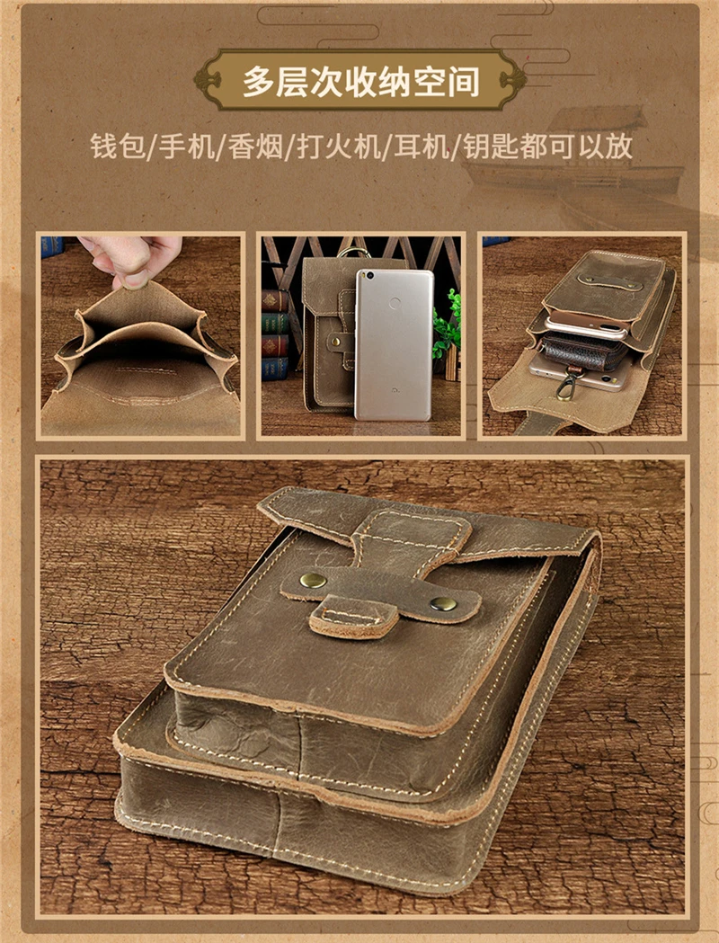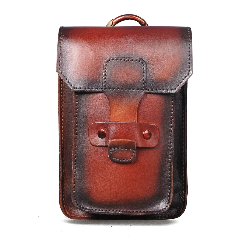 Кожаная мужская сумка ручной работы Crazy Horse, кожаный чехол для мужчин, кожаная сумка для головы 7 дюймов, поясная сумка, ремень для ношения, работа, сидение