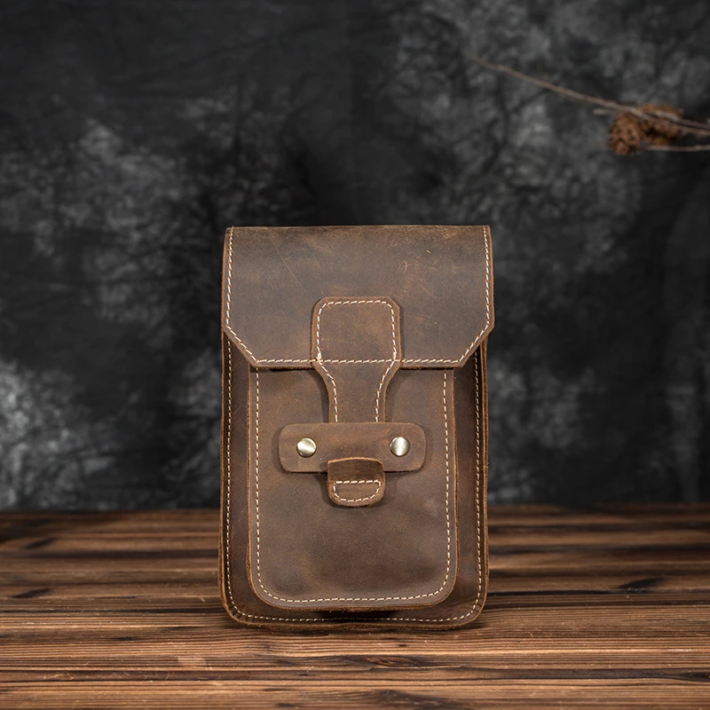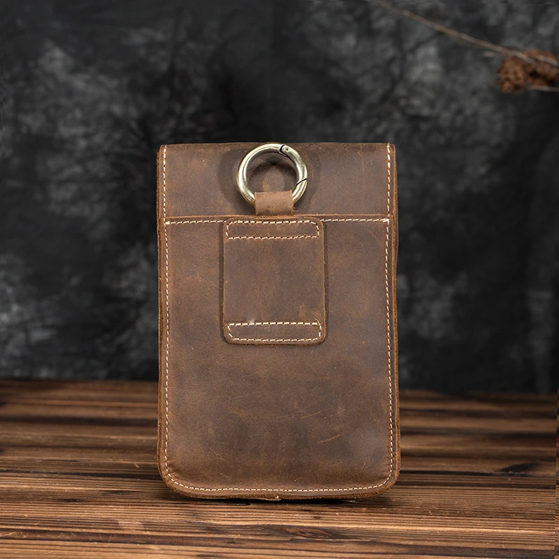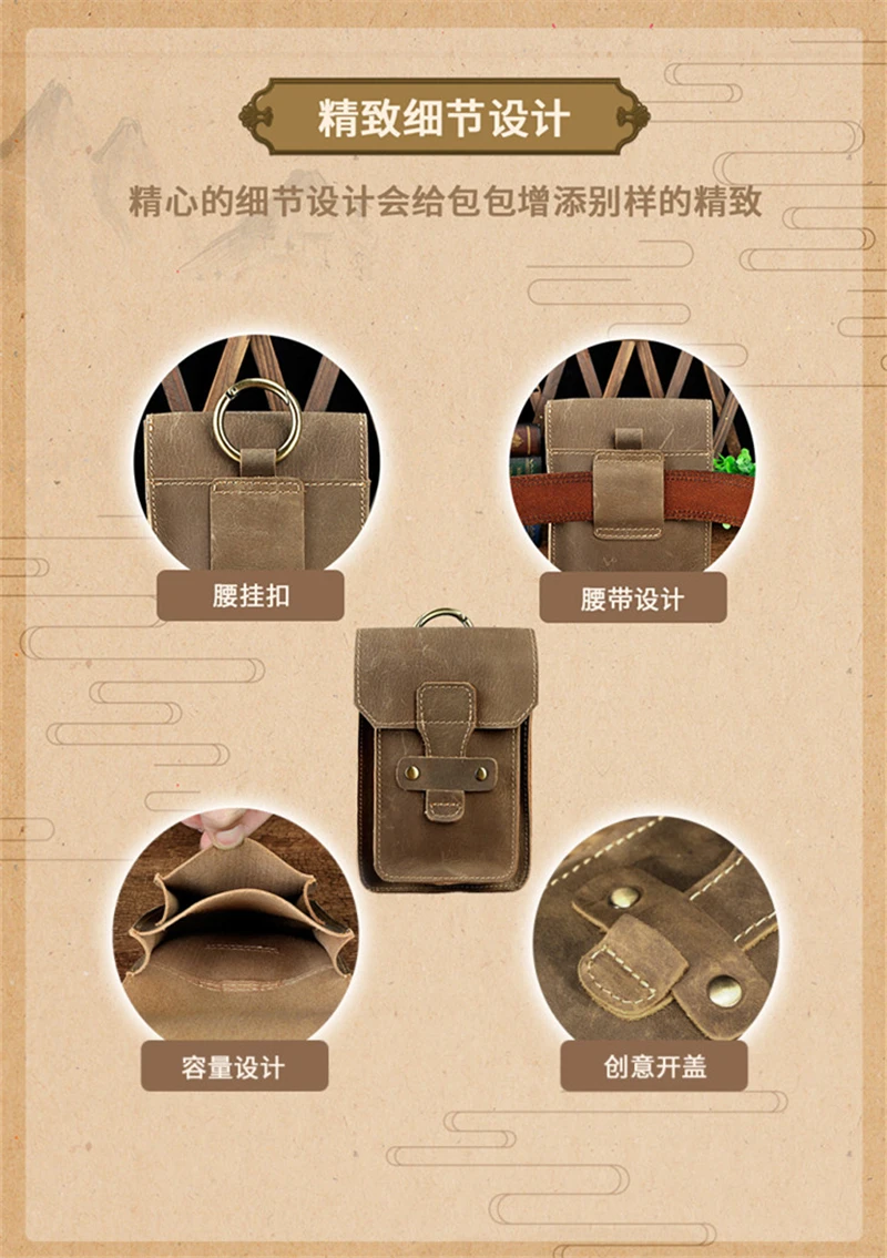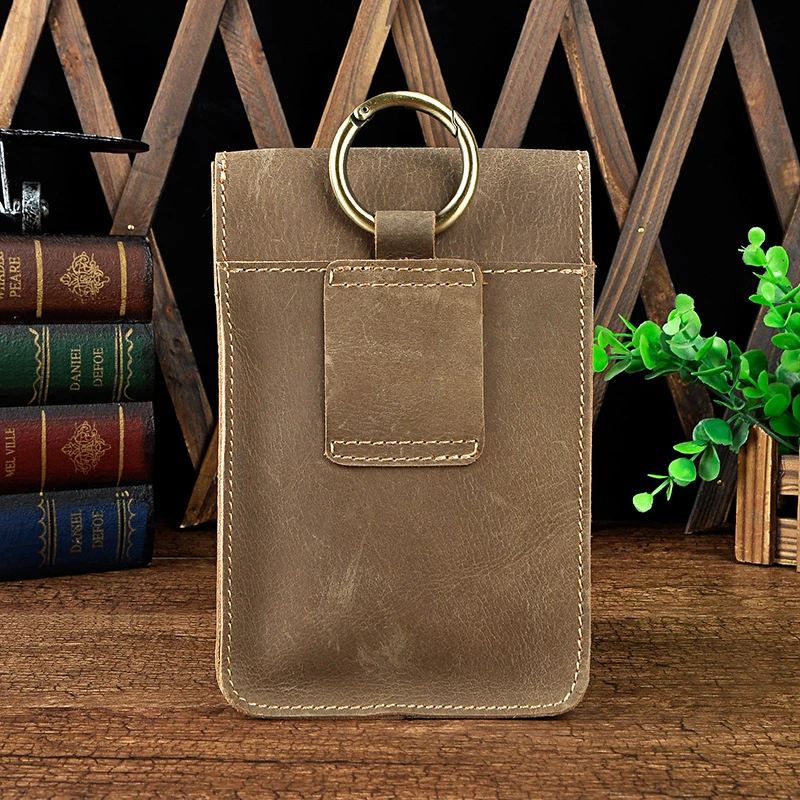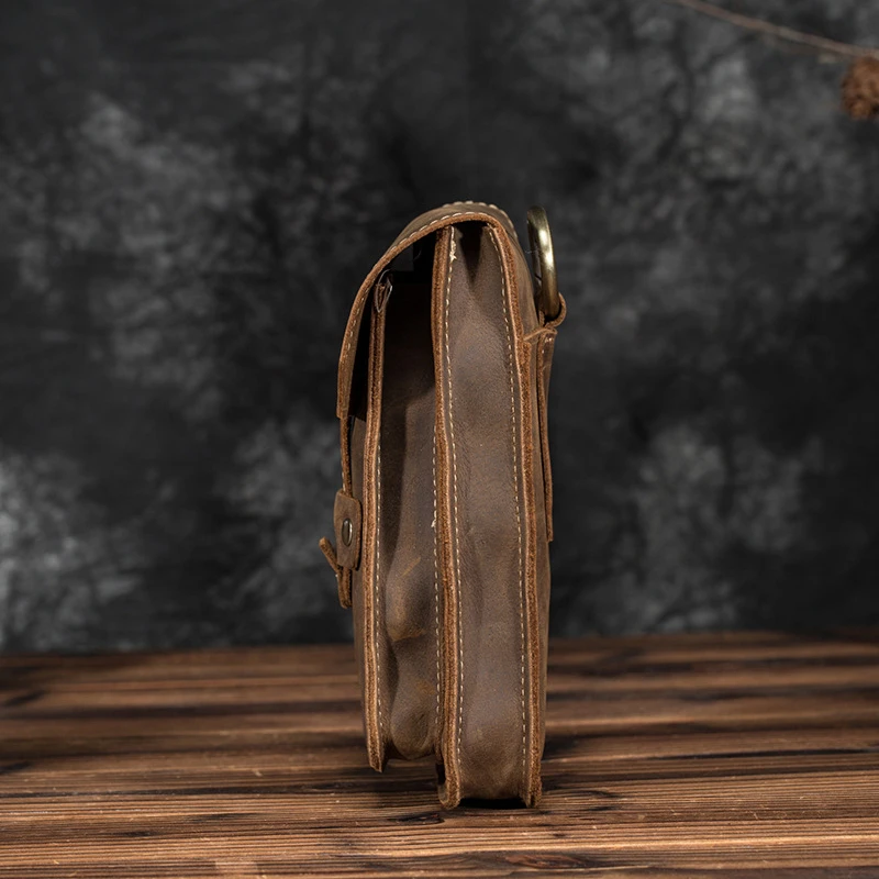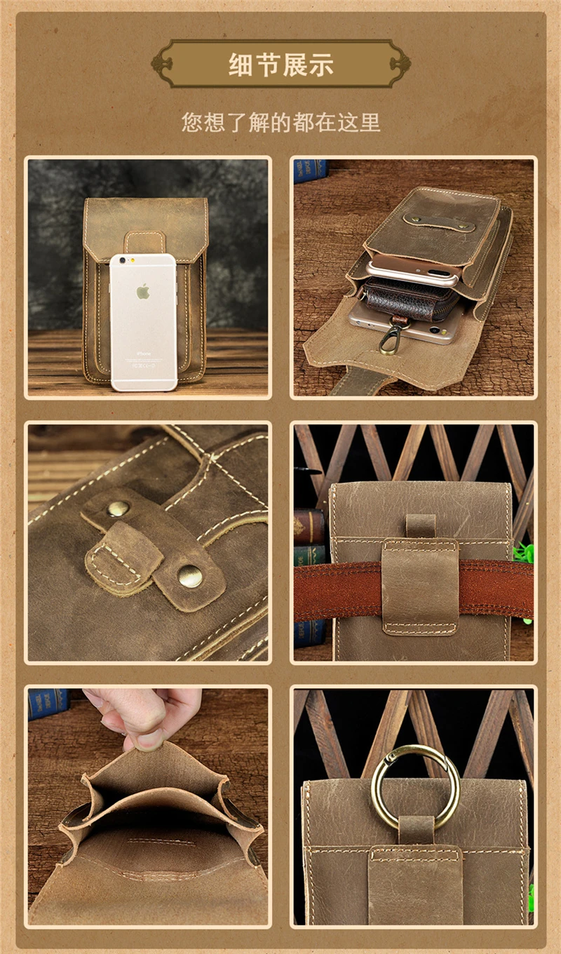 Кожаная мужская сумка ручной работы Crazy Horse, кожаный чехол для мужчин, кожаная сумка для головы 7 дюймов, поясная сумка, ремень для ношения, работа, сидение