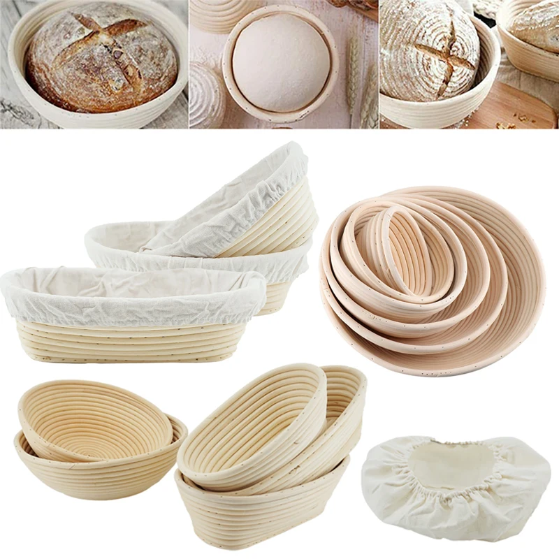 КруглаяОвальная корзина из натурального ротанга для брожения хлеба, теста, плетеная корзина из ротанга, корзины для переработки, кухонные инструменты