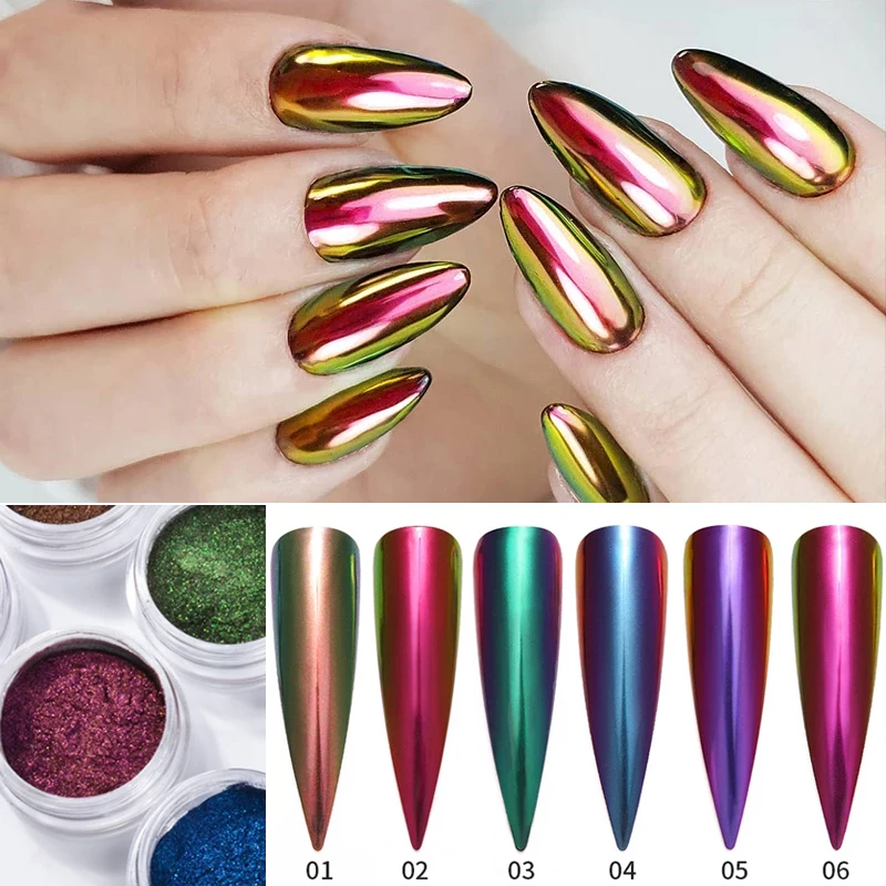 1 коробка, хамелеон, рандомный УФ-Гель-лак для ногтей, Пыль для дизайна ногтей, эффект металлик, украшение для ногтей