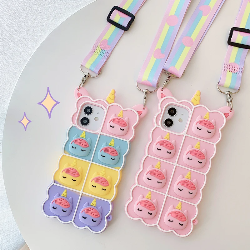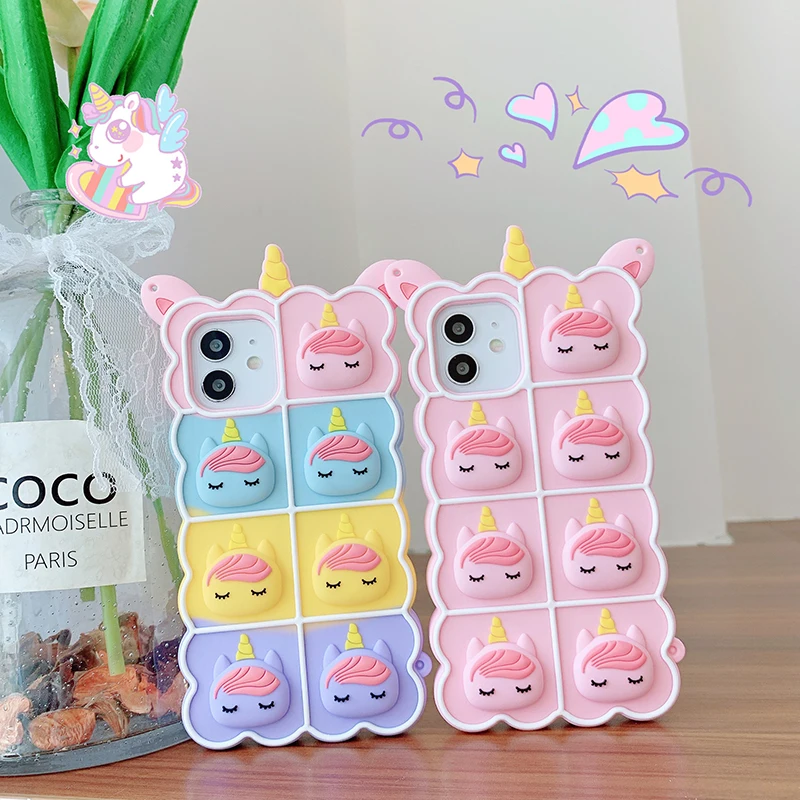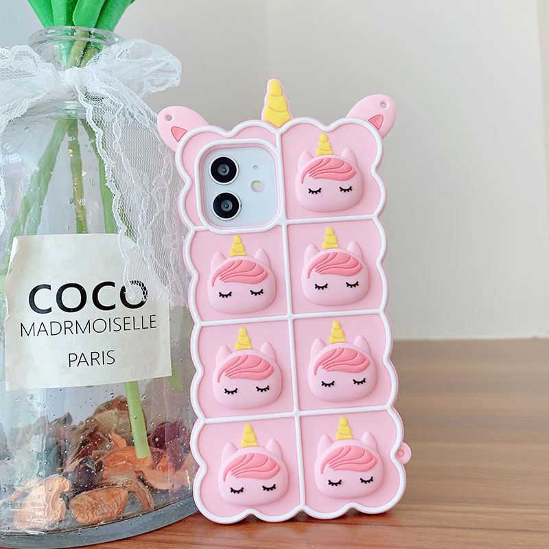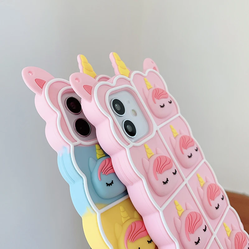 Мягкий силиконовый чехол с мультяшным единорогом для iPhone 12 11 13 Pro XS Max 5 5S 6 6S 7 8 Plus X XR SE, снимающий стресс, пузырьковый чехол