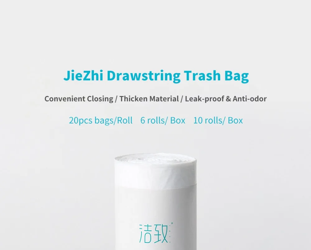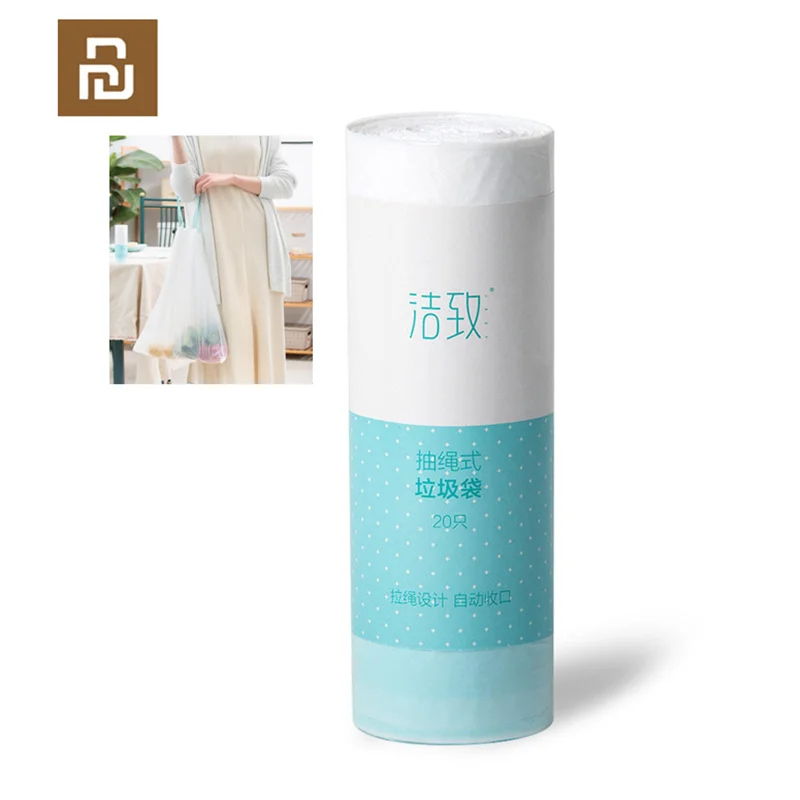 Пакеты youpin JieZhi на шнурке для мусора, плотный материал для предотвращения утечки, бытовой пластиковый мешок для мусора 20 шт.1 рулон