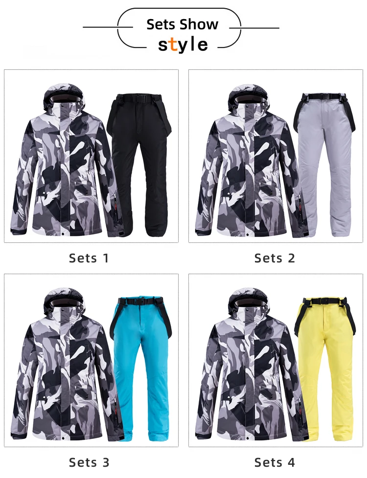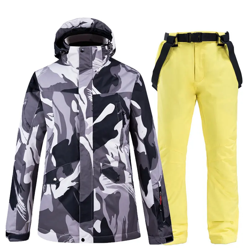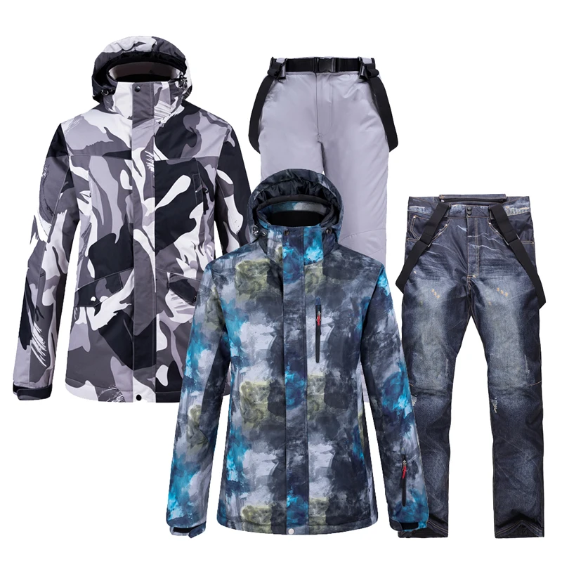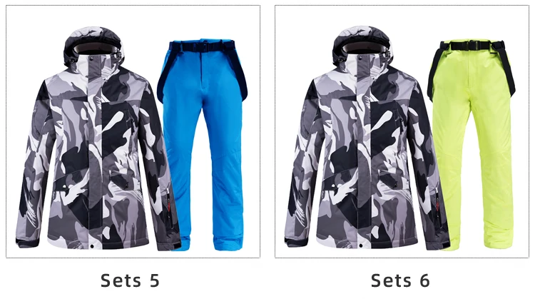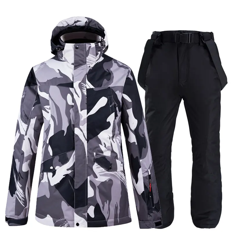 -30 Камуфляжный мужской зимний костюм в стиле джунглей, зимняя уличная одежда, водонепроницаемый костюм для сноуборда, лыжная куртка и брюки на бретелях