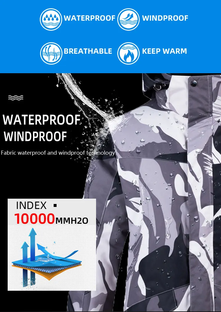 Мужской зимний костюм-30, зимняя водонепроницаемая ветрозащитная Сп...