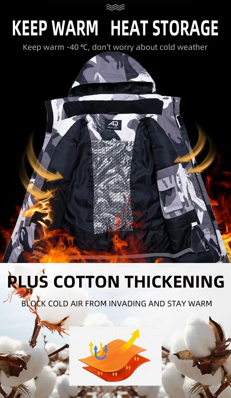 Толстый теплый черный Камуфляжный лыжный костюм, мужские зимние кос...