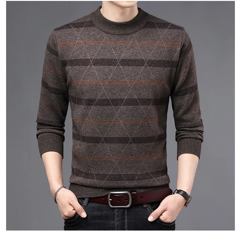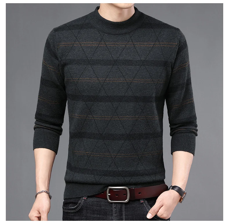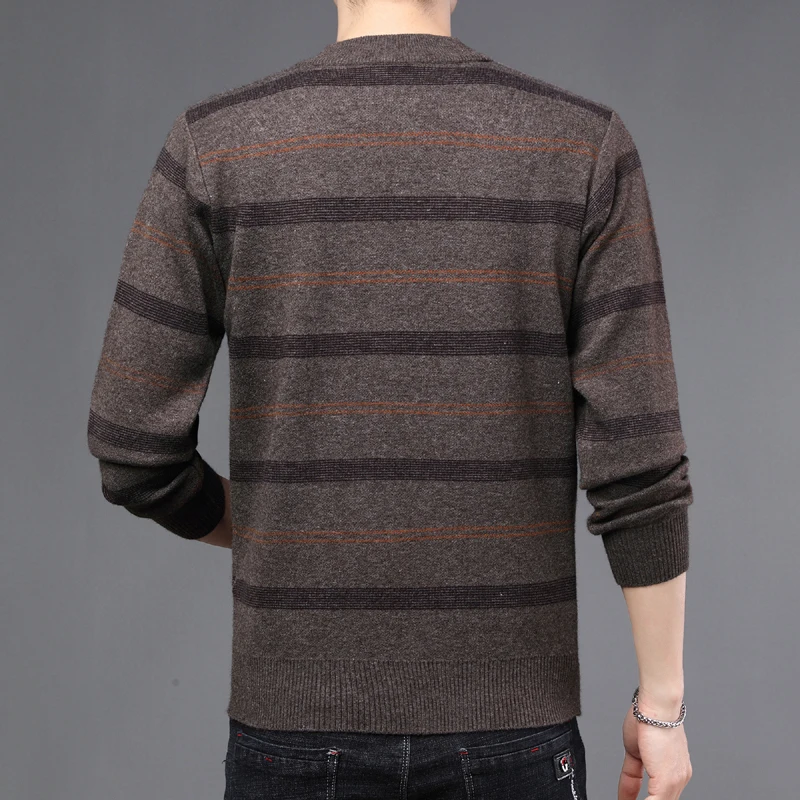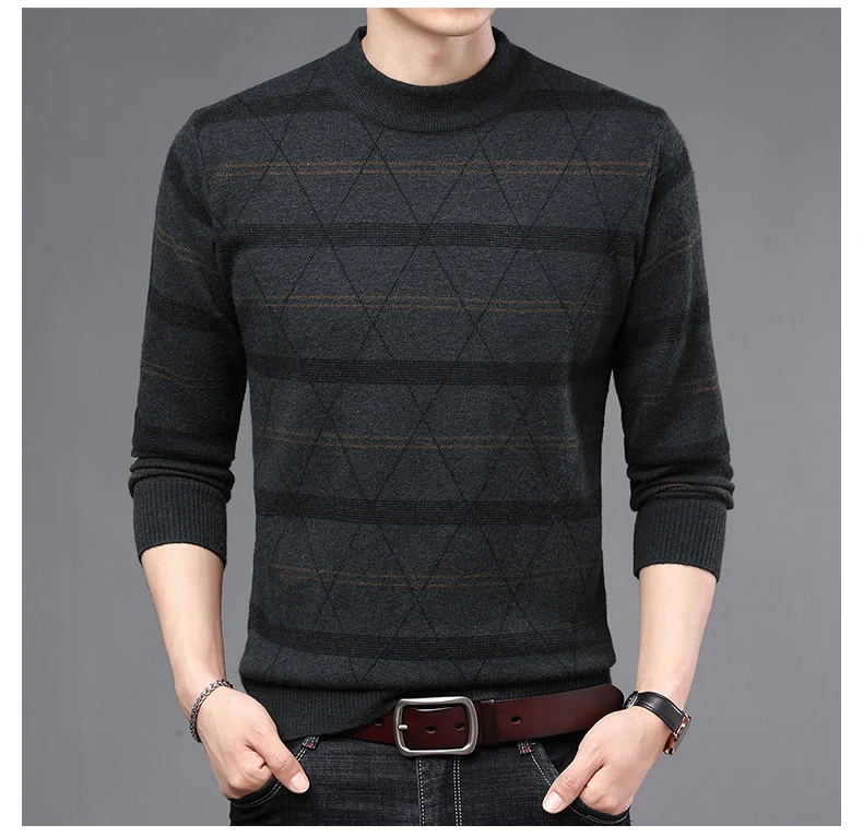 Свитер мужской шерстяной на молнии, зимний, теплый, полосатый