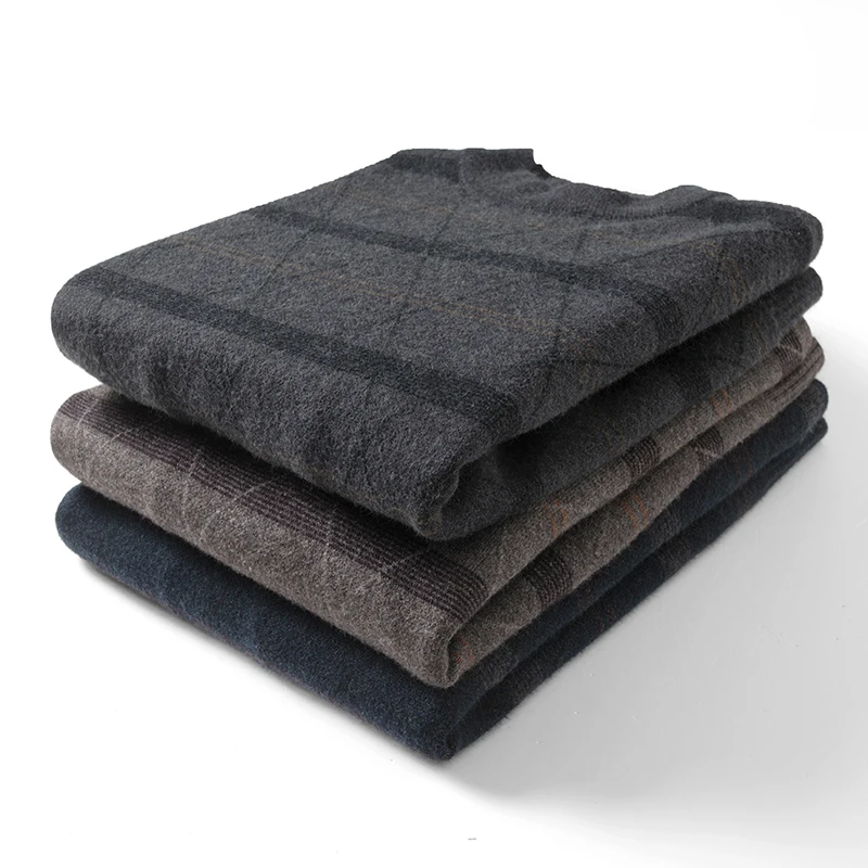 Свитер мужской зимний с флисовой подкладкой и круглым вырезом, Y382