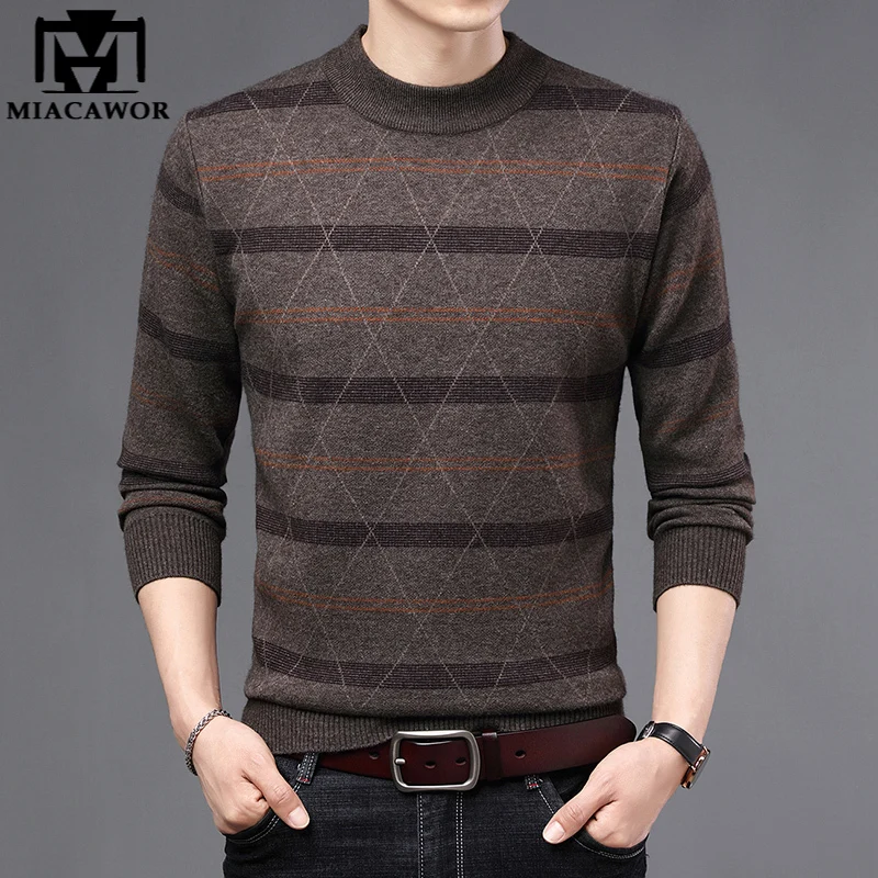 Мужской теплый шерстяной свитер MIACAWOR, пуловер в стиле пэчворк, вязаный джемпер, свитер с круглым вырезом, Мужская одежда для зимы, Y286