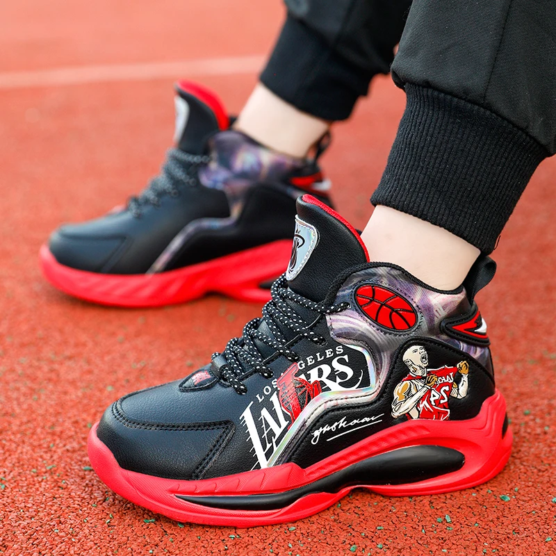 Баскетбольные кроссовки для мальчиков и девочек, дышащие, на толстой подошве, Нескользящие, Спортивная Уличная обувь для детей
