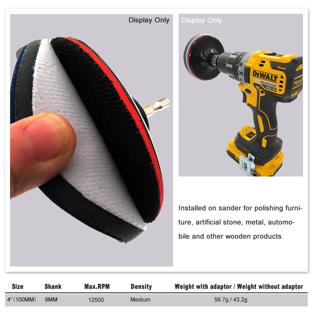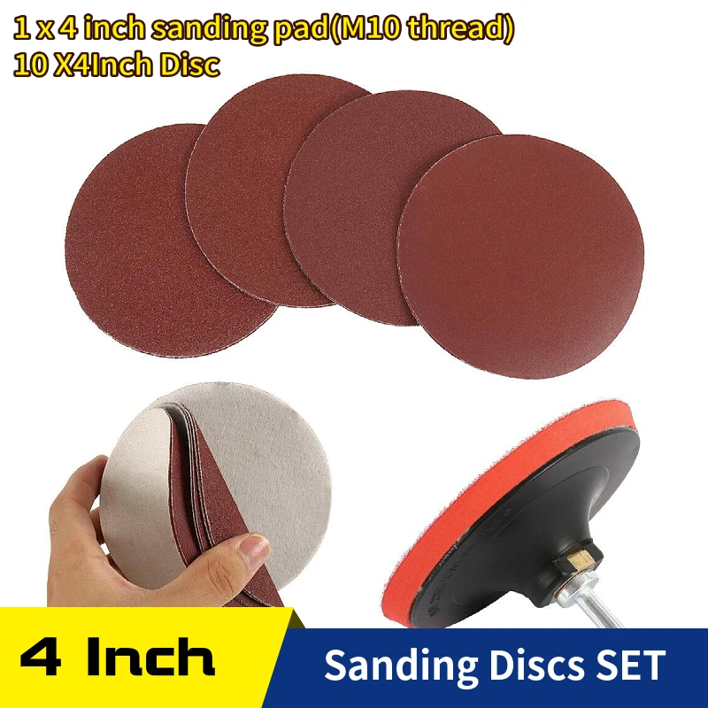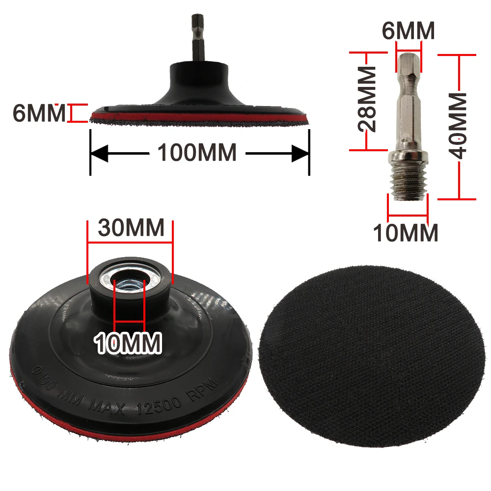 10 шт. Шлифовальные диски с крючком и петлей 4 дюйма 100 мм с 1 шт. Вращающейся подкладкой с адаптером для сверла M10 Абразивные инструменты для полировки