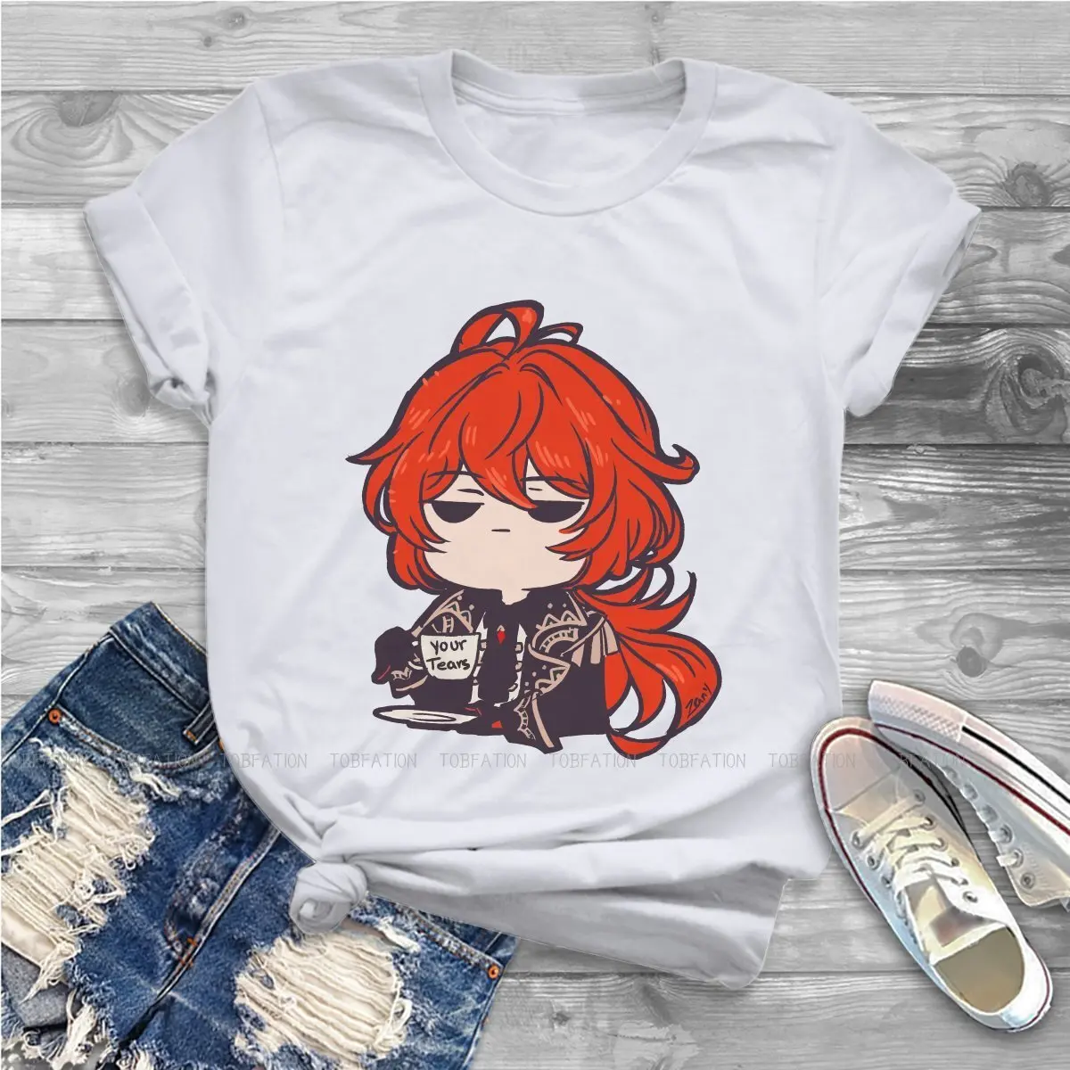 Женская футболка разбавленная чашка слез, Genshin Impact Game, базовые топы для девочек, Хлопковая женская футболка 4XL, Забавный модный подарок