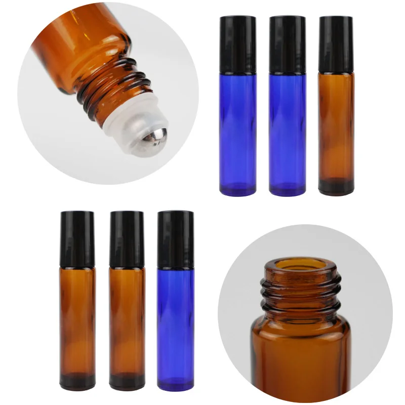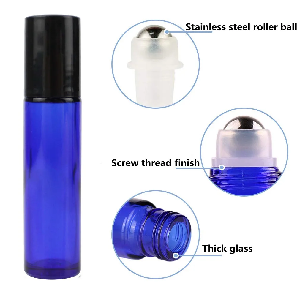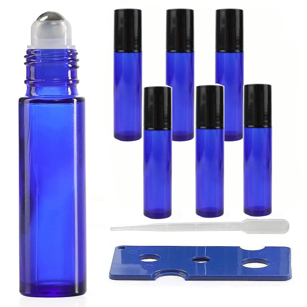 6 упаковок, 10 мл стеклянные роликовые бутылки синего цвета с роликовыми шариками из нержавеющей стали для эфирных масел и духов