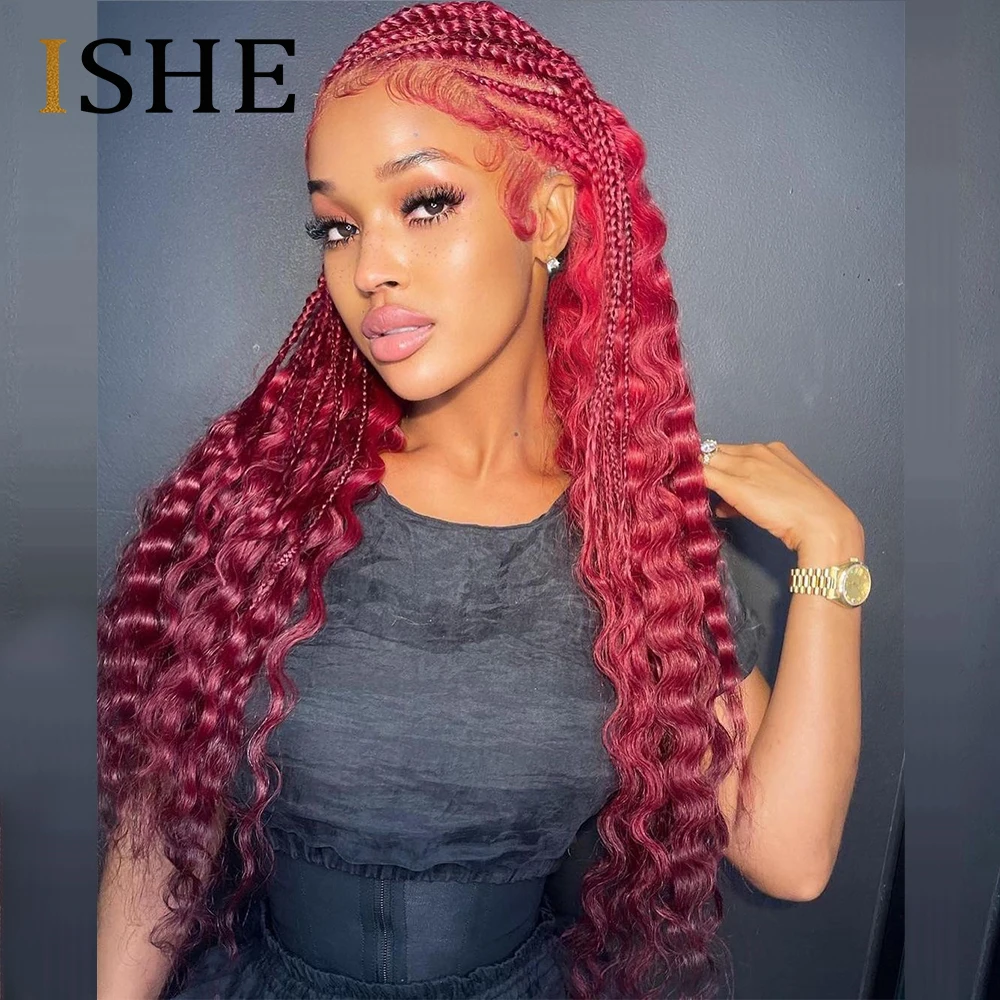 Парик из натуральных человеческих волос 99J, бордовый, 13x 6, на сетке спереди, 30 дюймов, с глубокой волной, для черных женщин, 4x4, бразильский парик на сетке