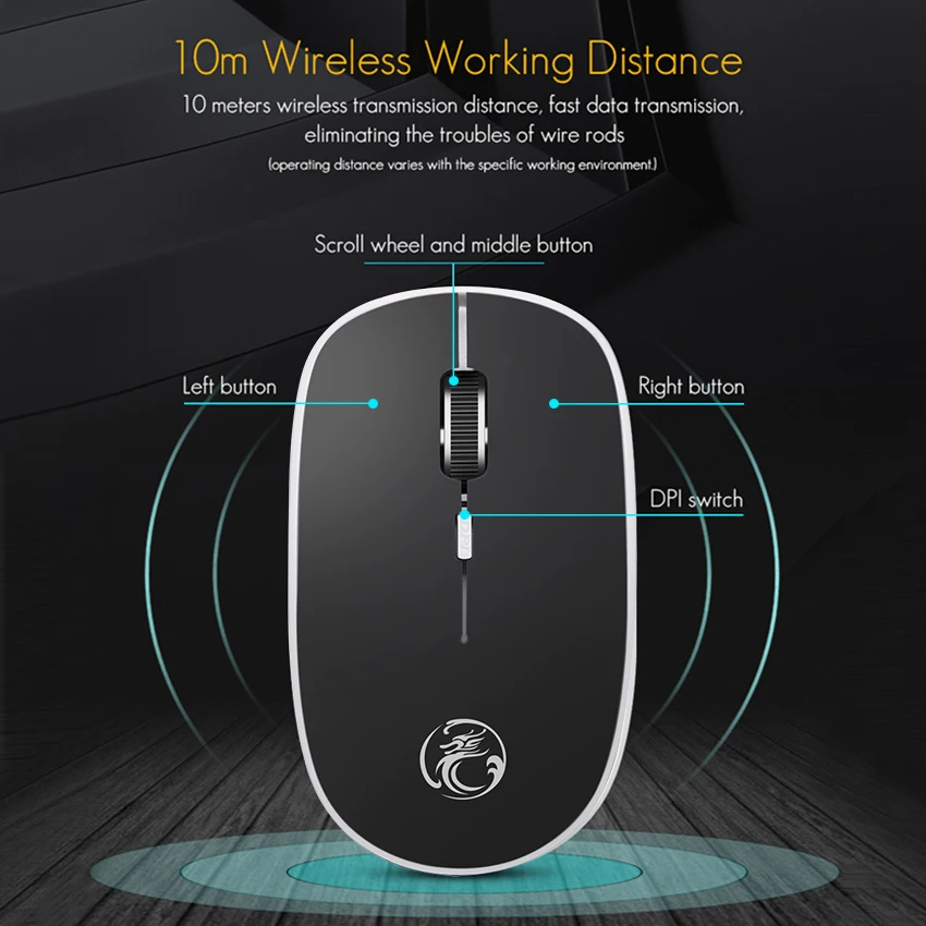 Мышь компьютерная беспроводная, 2,4 ГГц, 4 кнопки, 1600DPI