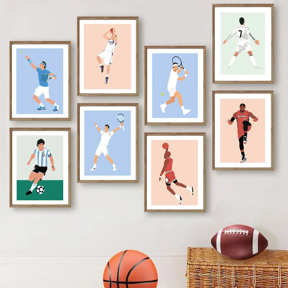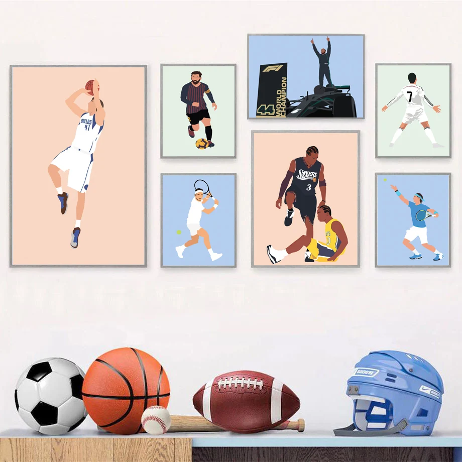 Месси Роналду Леброн Джеймс Роза теннис F1 настенная живопись холст скандинавские плакаты и принты настенные картинки для декора гостиной