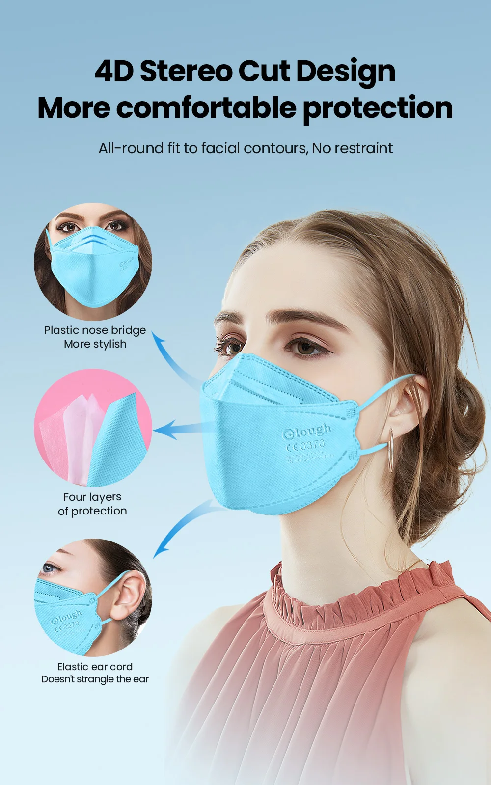 Elough Fsih форма FFP2 маска сертифицированная 4-слойная респиратор...