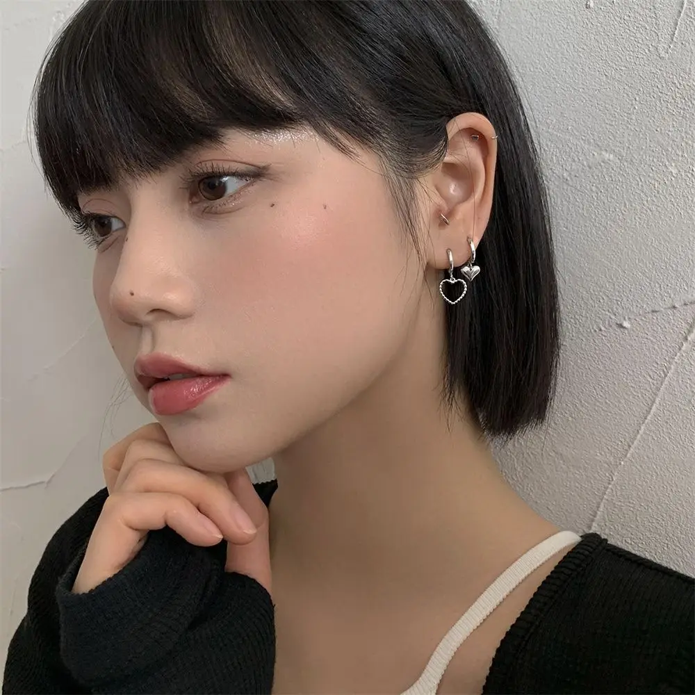 Новые асимметричные серьги в форме сердца серебряного цвета, элегантные милые Висячие серьги для женщин и девушек, бижутерия для вечеринки и свадьбы, аксессуары