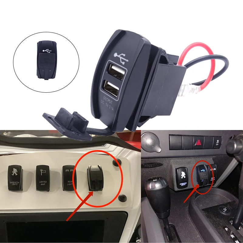 Зарядное устройство с двумя USB-портами, водонепроницаемое зарядное устройство А, Carling ARB, синяя светодиодная подсветка, автомобильная лодка, для UTV ATV Honda Fit, панель переключателя