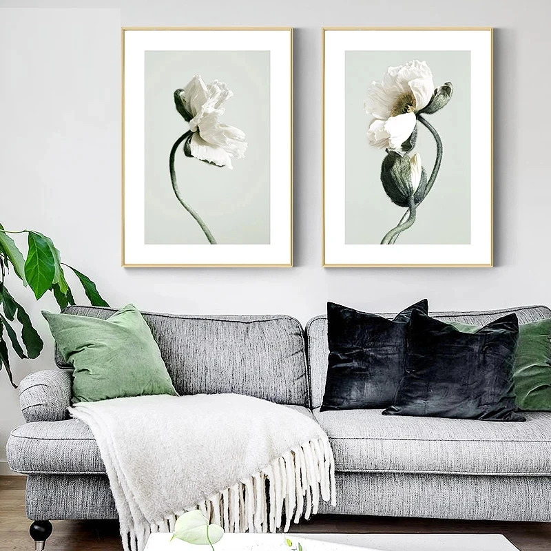 Картина на холсте с зелеными растениями, постер с лепестками цветов, скандинавский ботанический художественный принт, Скандинавская Настенная картина для украшения гостиной