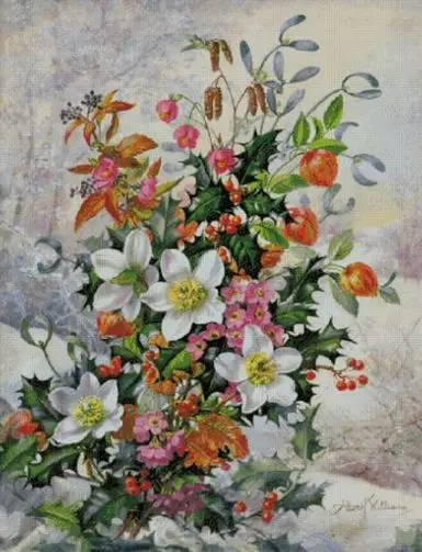 Картина маслом, ваза с цветами, искусство, вышивка, счетная вышивка...