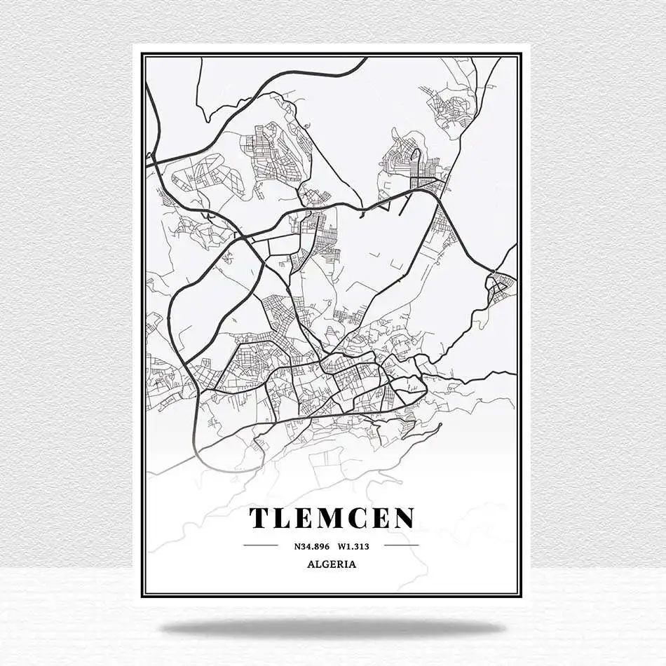 Настенный декор в скандинавском стиле для спальни, домашний декор, Алжир, Tlemcen Jijel Oran Batna Bejaia City Maps, картины на холсте, винтажные постеры