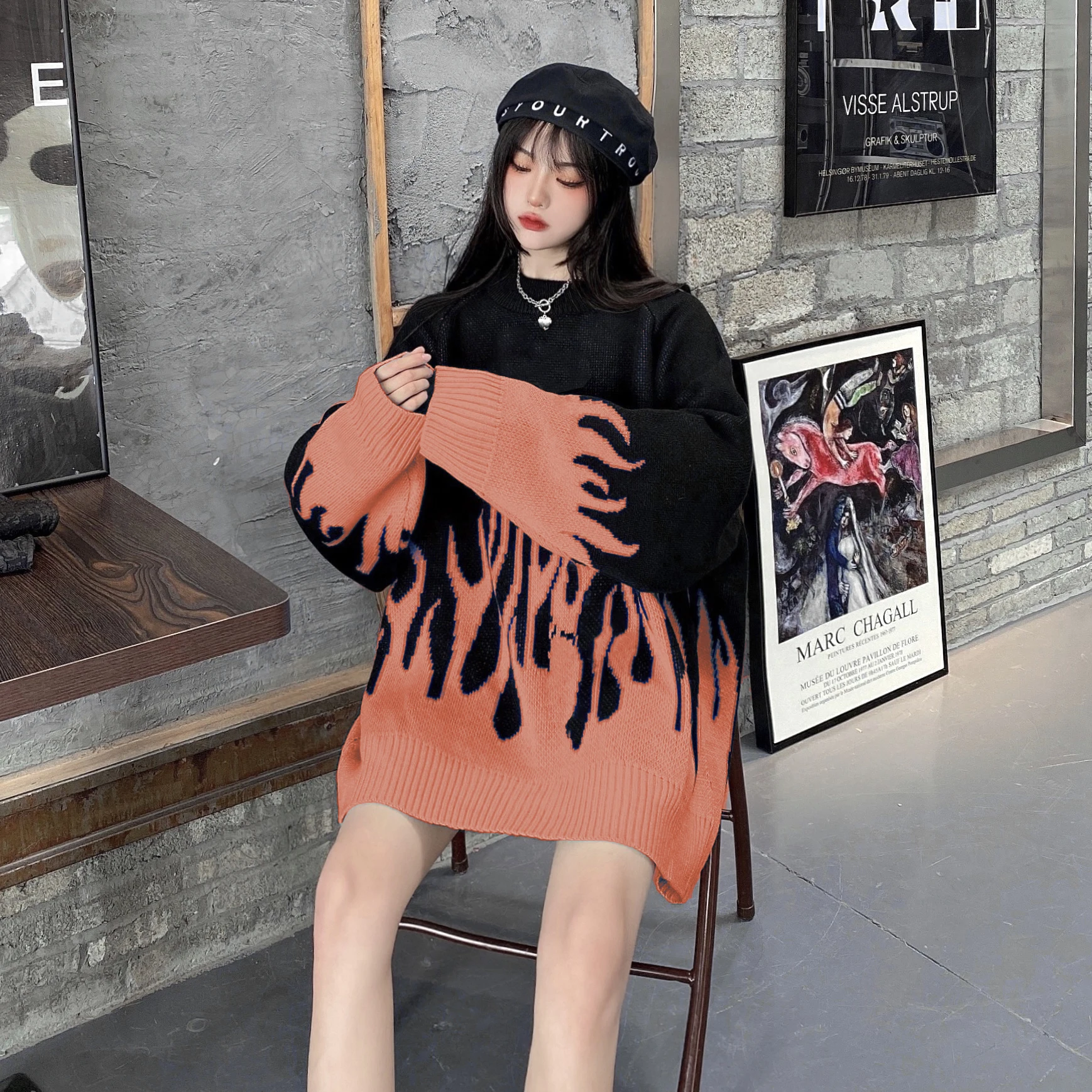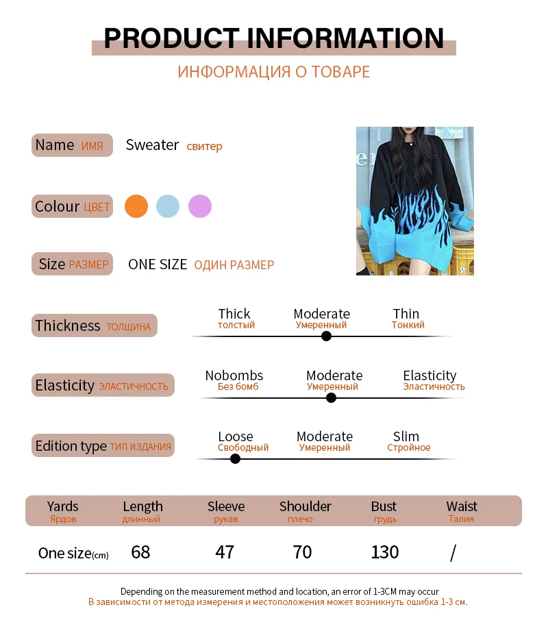 Женский свитер оверсайз с синим пламенем, модный Свободный Повседневный пуловер в Корейском стиле, вязаный крючком, в стиле кэжуал, Осень-зима