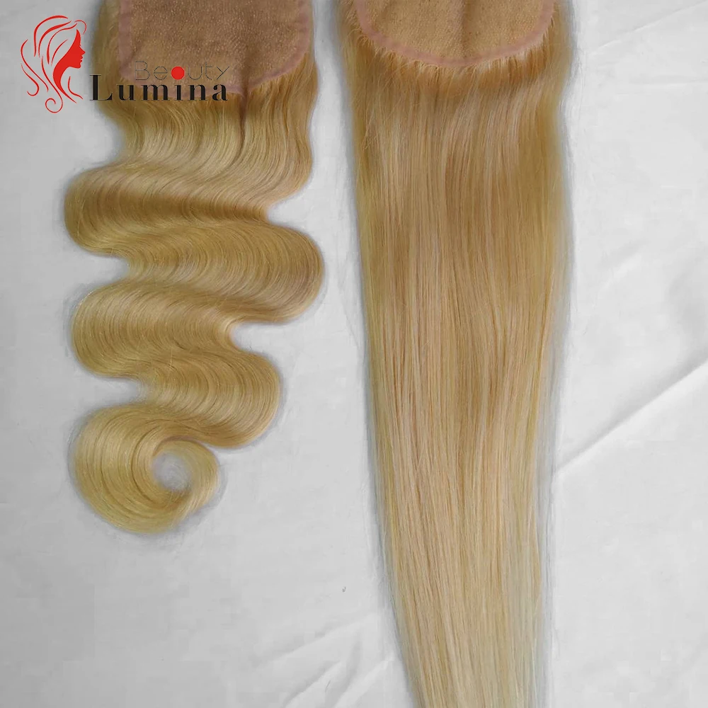 Светлые волосы с кружевной застежкой, волнистые волосы 4x4, только натуральные 100% человеческие волосы, бразильские прямые волосы, предварительно выщипанные 613 человеческие волосы
