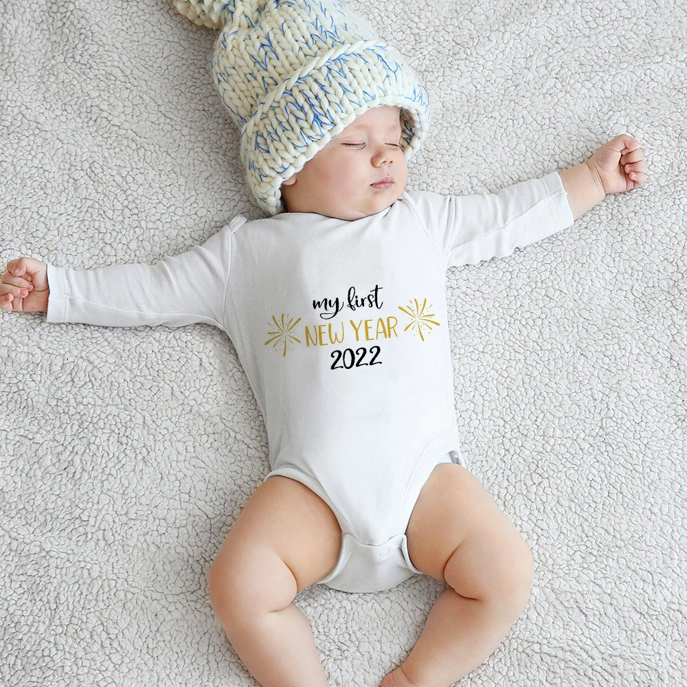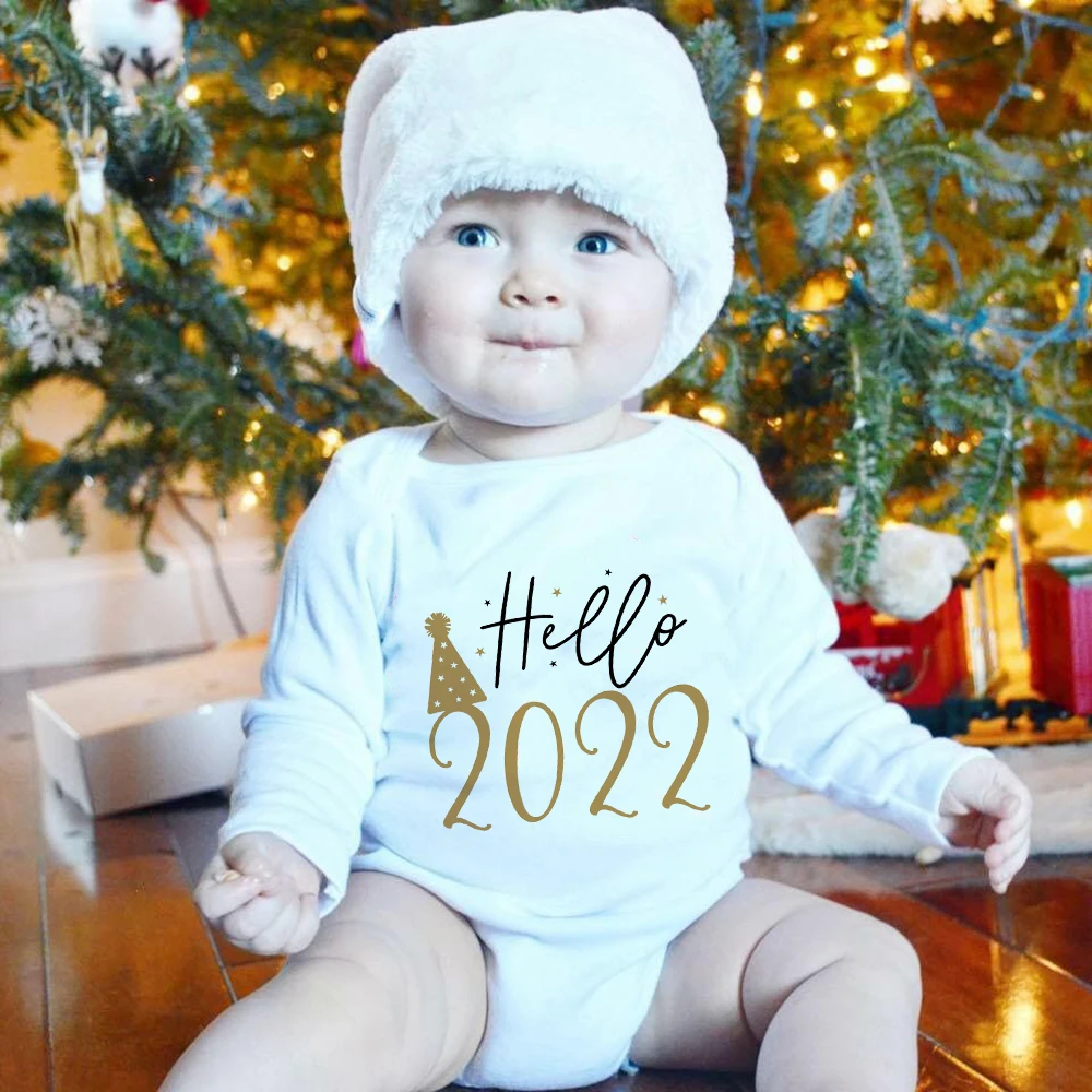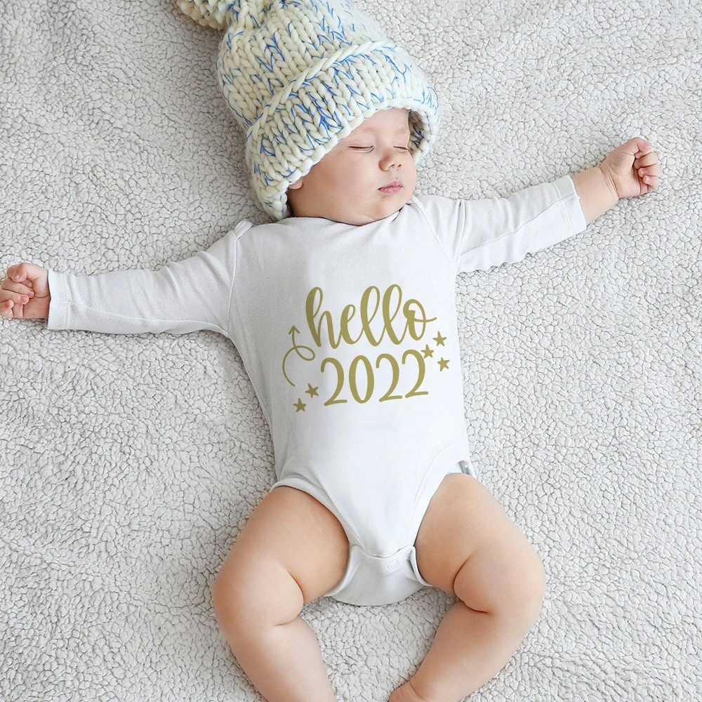 Здравствуйте, 2022, боди для новорожденных, мой первый новый год, белые комбинезоны с длинными рукавами для малышей, комбинезон, одежда для мальчиков и девочек, подарок для новорожденных