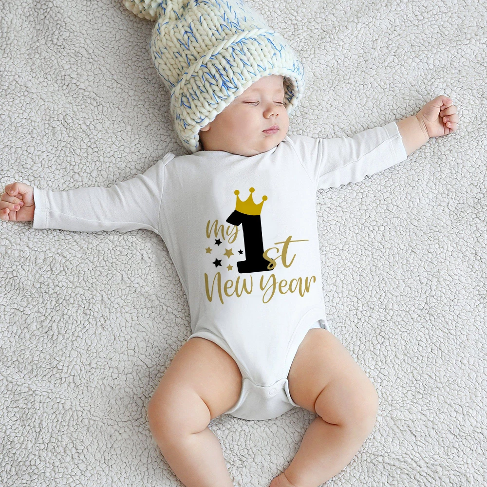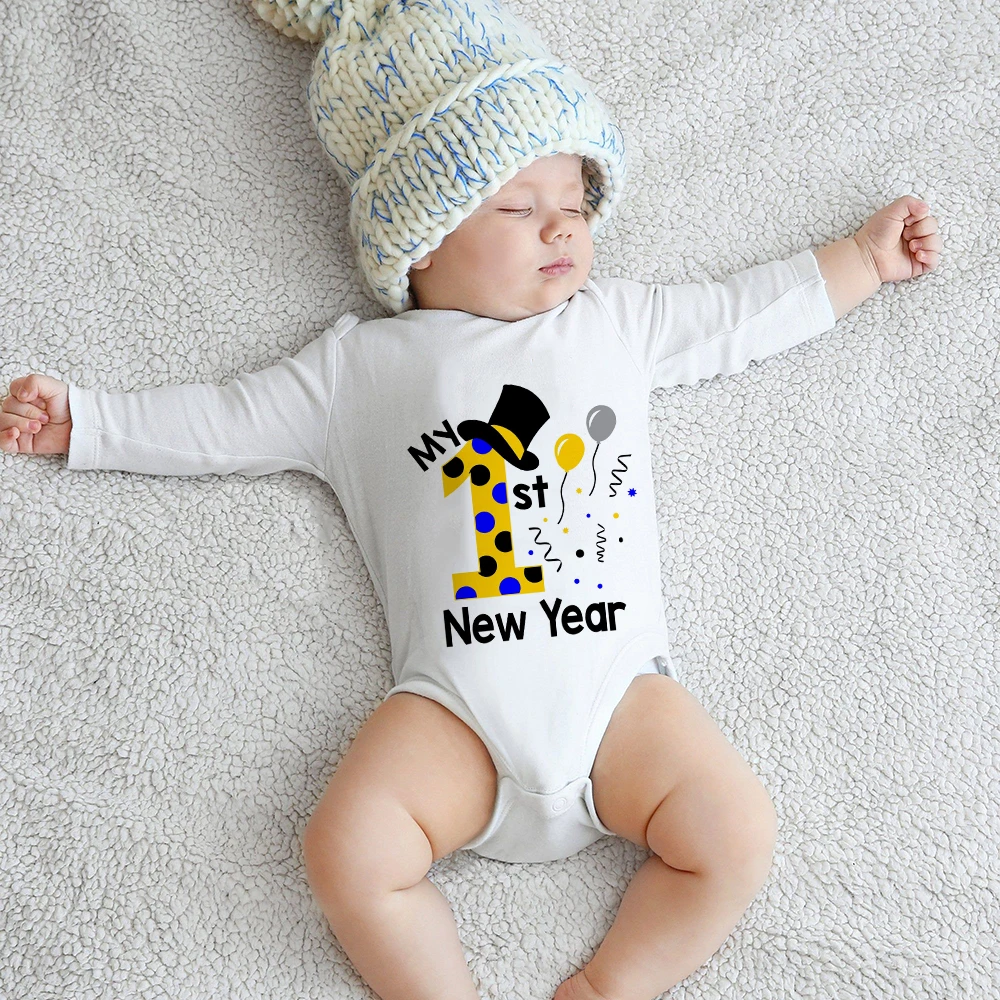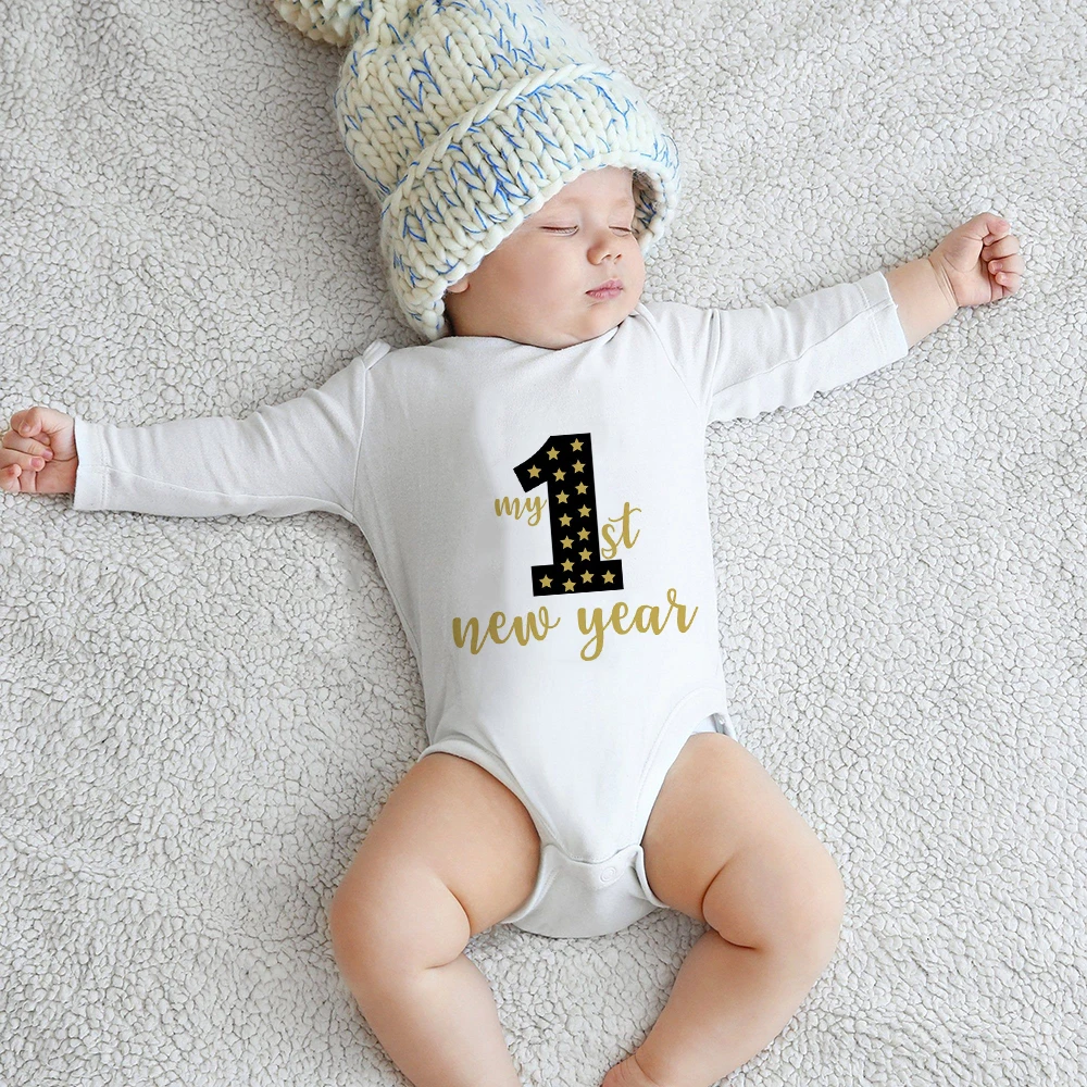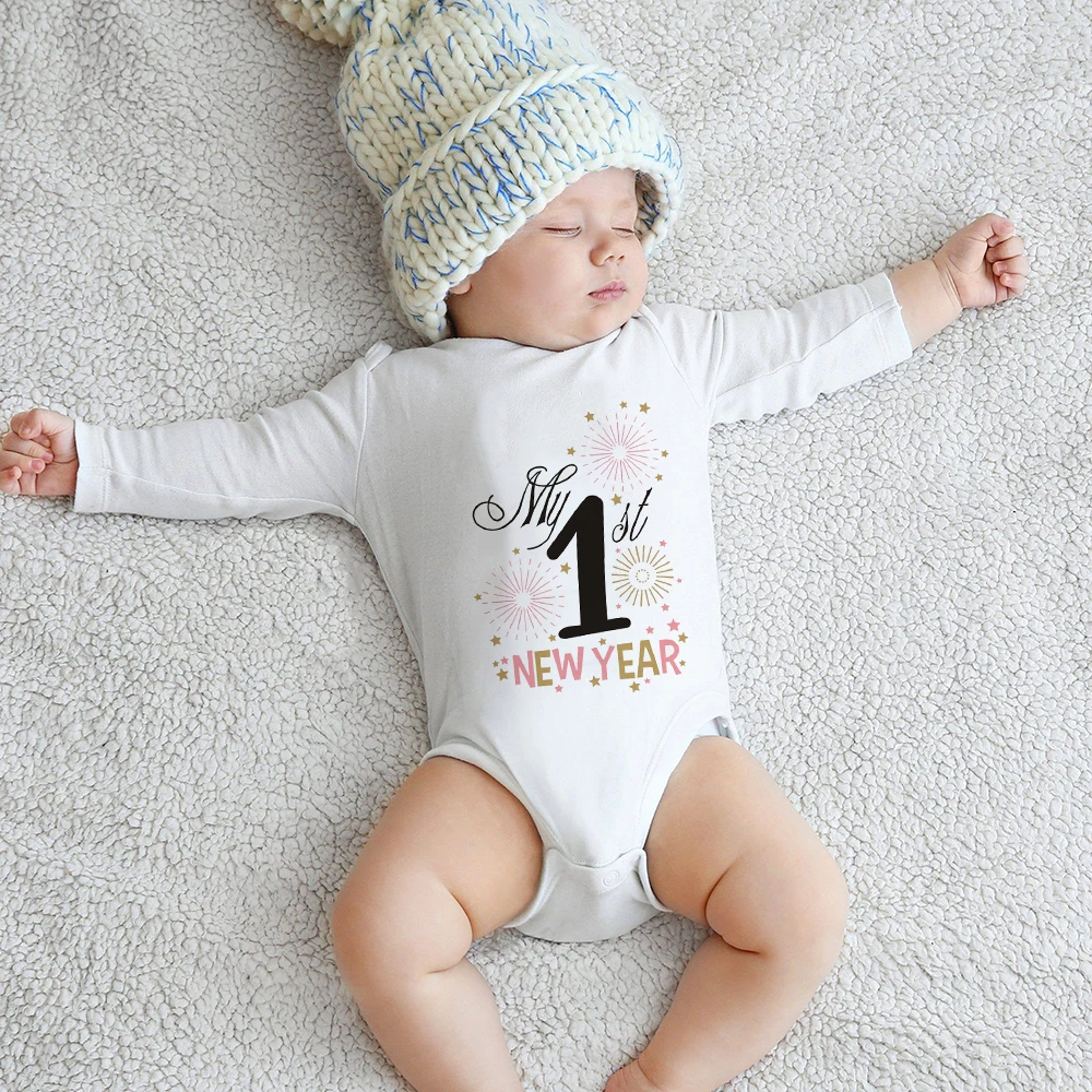 Здравствуйте, 2022, боди для новорожденных, мой первый новый год, белые комбинезоны с длинными рукавами для малышей, комбинезон, одежда для мальчиков и девочек, подарок для новорожденных