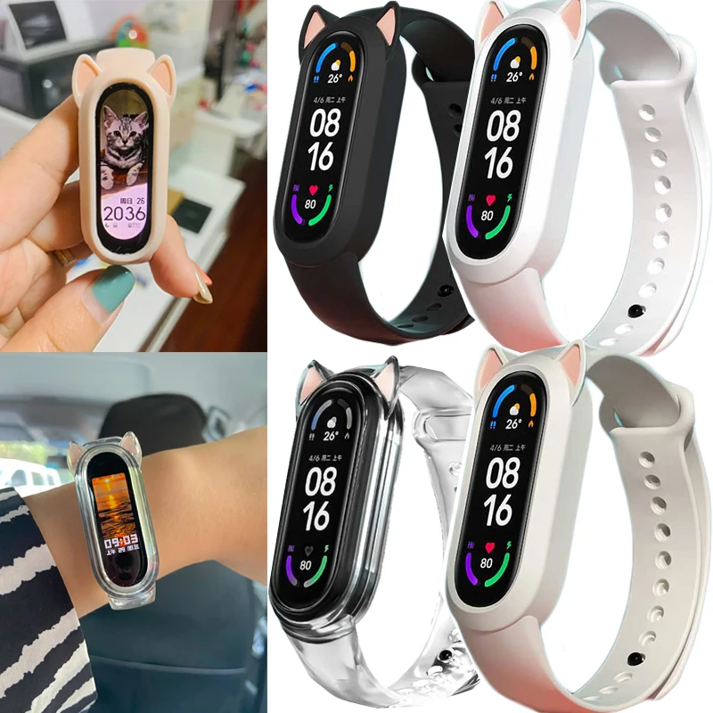 Силиконовый ремешок с кошачьими ушками для Xiaomi Mi Band 6 5 4 3, ...