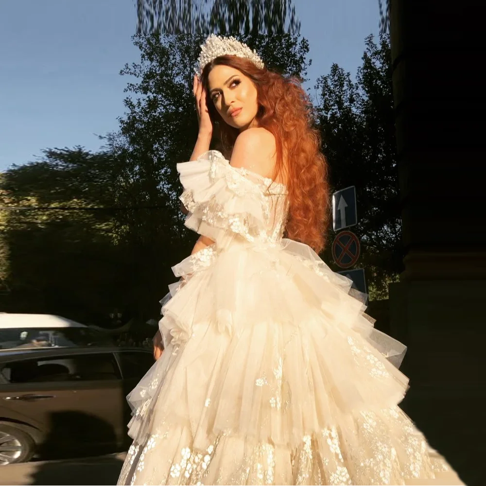 Женское Тюлевое платье с оборками, пышное длинное платье невесты не...