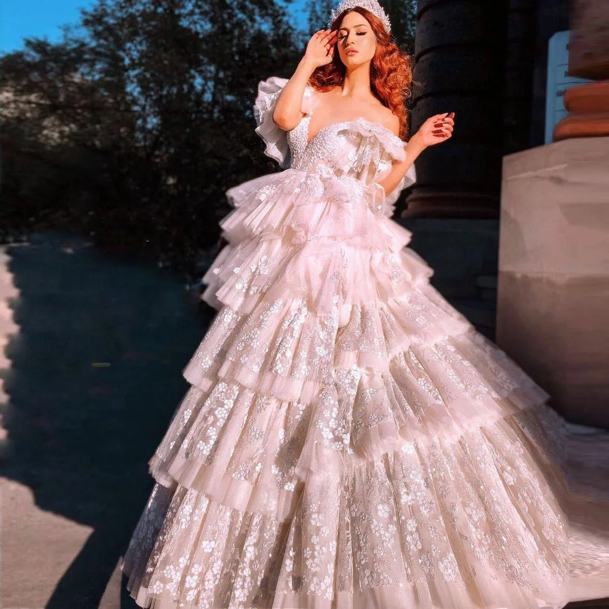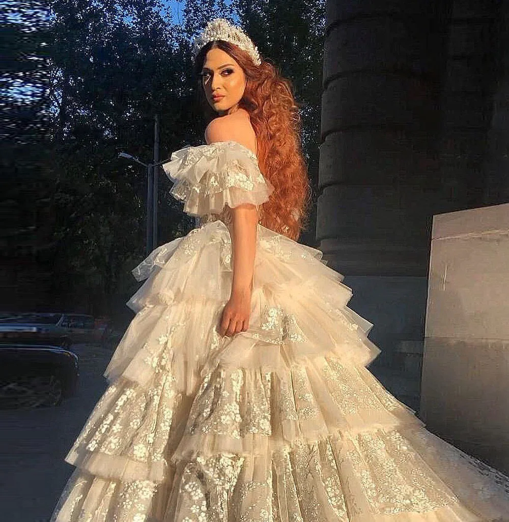 Соблазнительное платье с пышными оборками, Тюлевое длинное платье д...